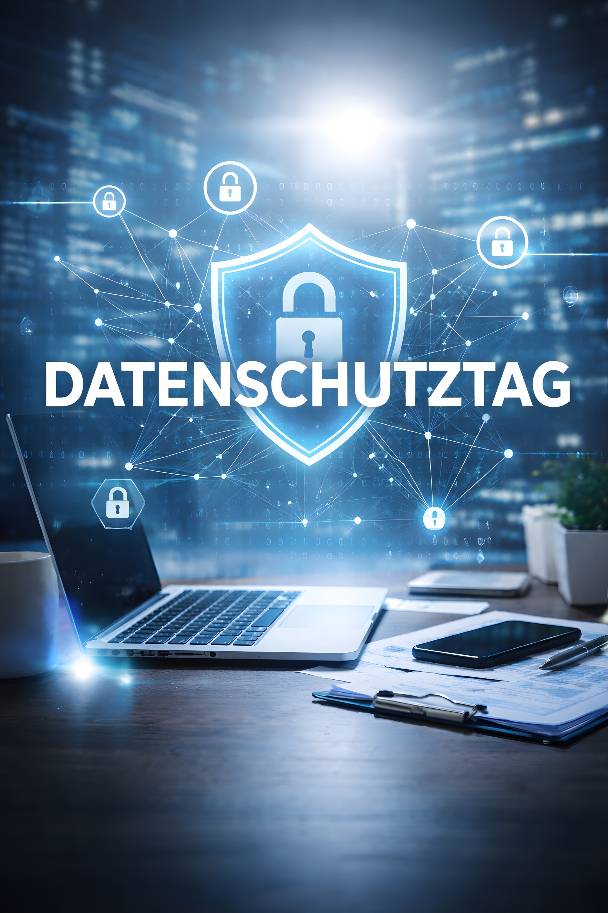 Dieses Stockfoto zeigt ein Konzept für Datenschutz und Cyber-Sicherheit. Auf einem modernen Büroarbeitsplatz mit Laptop und Smartphone ist ein großes, strahlend blaues Datenschutzschild zu sehen, umgeben von Netzwerksymbolen. Die Szene symbolisiert die Wichtigkeit von Informationssicherheit und dem Schutz digitaler Daten in Zeiten der fortschreitenden Digitalisierung und Cloud-Nutzung. Das hochauflösende Bild eignet sich hervorragend für Blogbeiträge, Newsletter-Designs, Social-Media-Posts und Werbematerialien zum Thema IT-Sicherheit, DSGVO und Datenschutzbestimmungen. Es steht unter einer kostenlosen Creative-Commons-Lizenz zur Verfügung.