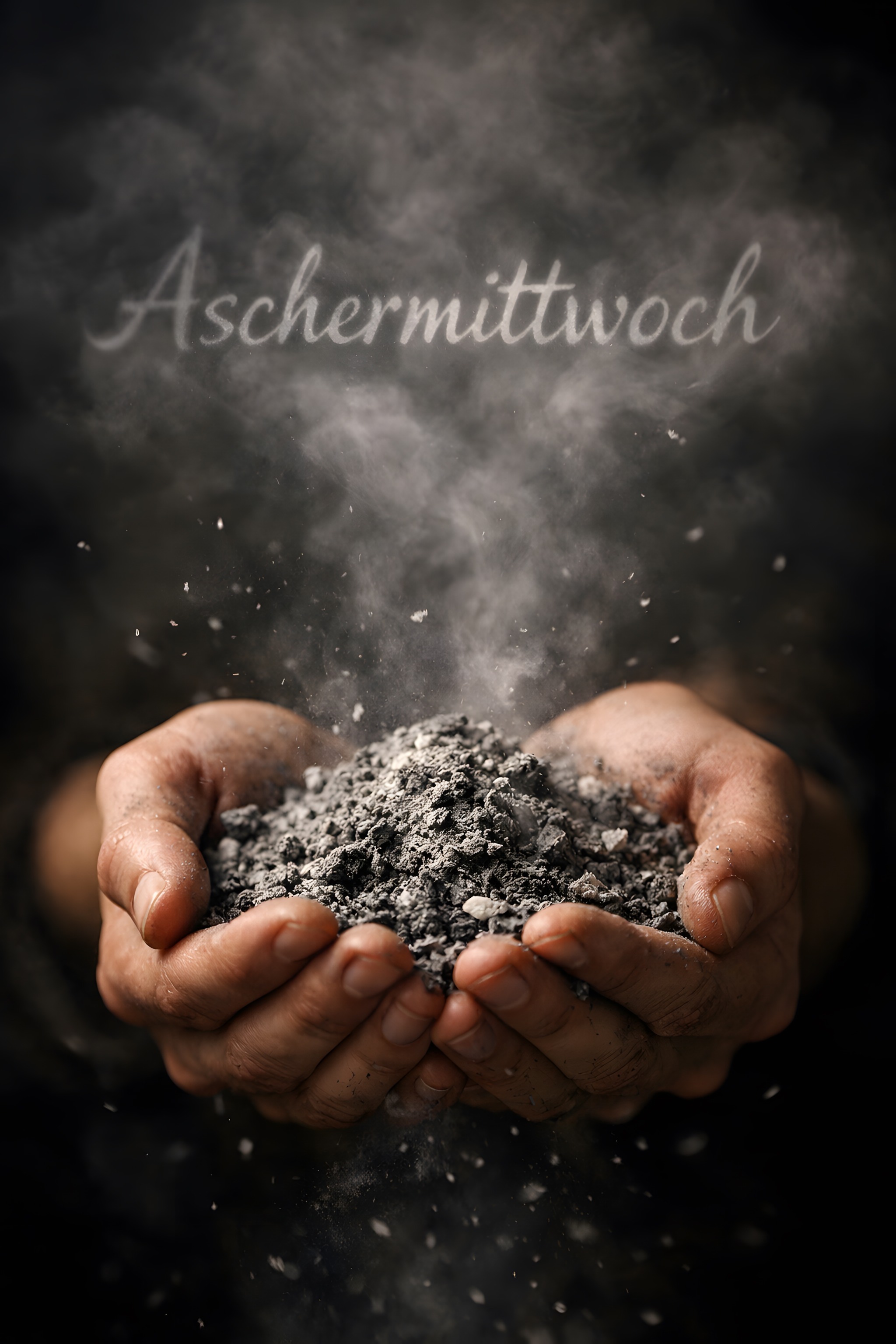 Dieses stimmungsvolle Schwarz-Weiß-Foto zeigt die Hände einer Person, die Asche in ihren hohlen Händen hält. Der dunkle, neblige Hintergrund verstärkt den ernsten, andächtigen Charakter der Szene und verleiht ihr eine symbolische, spirituelle Dimension. Die hochaufgewirbelte Asche unterstreicht den Aschermittwoch-Kontext - einen wichtigen christlichen Feiertag, an dem Gläubige mit Asche bekreuzigt werden, um die Vergänglichkeit des Irdischen zu symbolisieren. Dieses Stockfoto eignet sich hervorragend für den Einsatz in Blog-Beiträgen, Newsletter-Designs oder Social-Media-Postings rund um das Thema Aschermittwoch, Trauer, Buße und Umkehr. Das hochauflösende Bild ist unter einer Creative-Commons-Lizenz frei nutzbar.