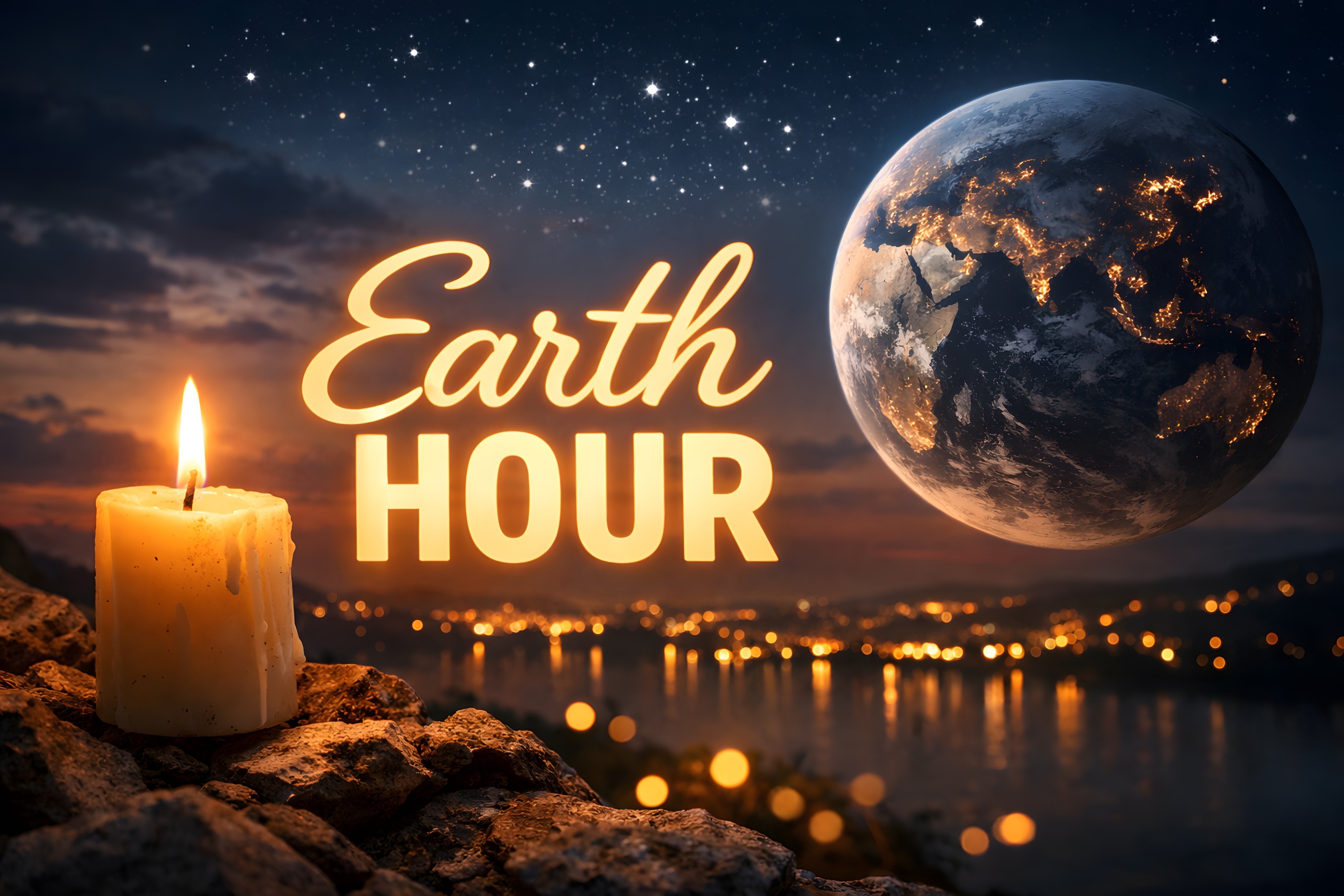 Dieses Stockfoto zeigt die Erde vor einem sternenübersäten Nachthimmel, neben einer brennenden Kerze. Das Bild vermittelt die Botschaft der Earth Hour - einer weltweiten Aktion, bei der Menschen für eine Stunde das Licht ausschalten, um auf den Klimawandel aufmerksam zu machen und ein Zeichen für Nachhaltigkeit zu setzen. Das Motiv eignet sich hervorragend für Blogbeiträge, Newsletter oder Social-Media-Postings rund um Umweltthemen, Energiesparen und ökologisches Bewusstsein. Das hochauflösende Foto steht unter der Creative-Commons-Lizenz und kann kostenfrei für private und kommerzielle Zwecke genutzt werden.