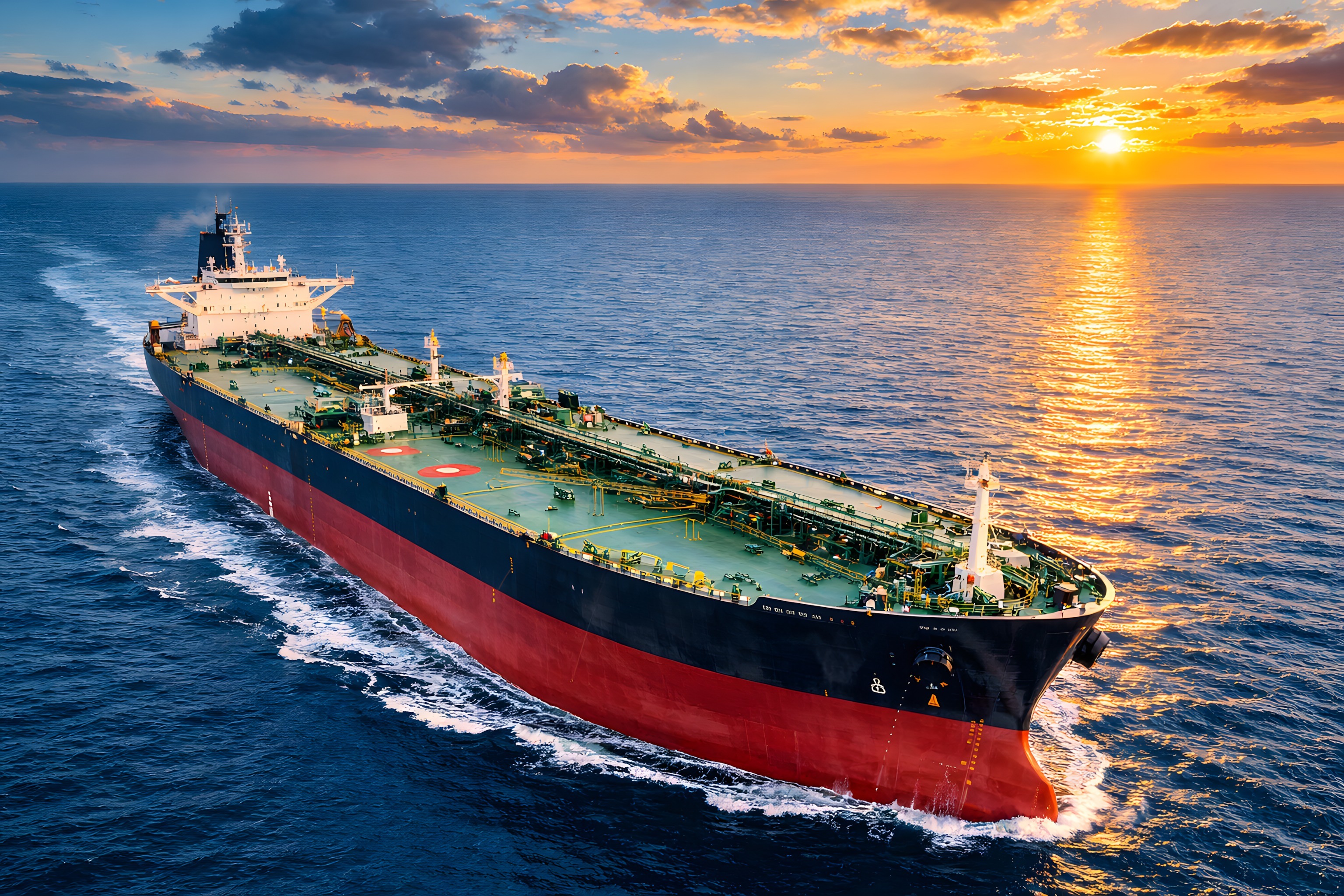 Ölfrachter auf See bei Sonnenuntergang von Marco Verch unter Creative Commons 2.0