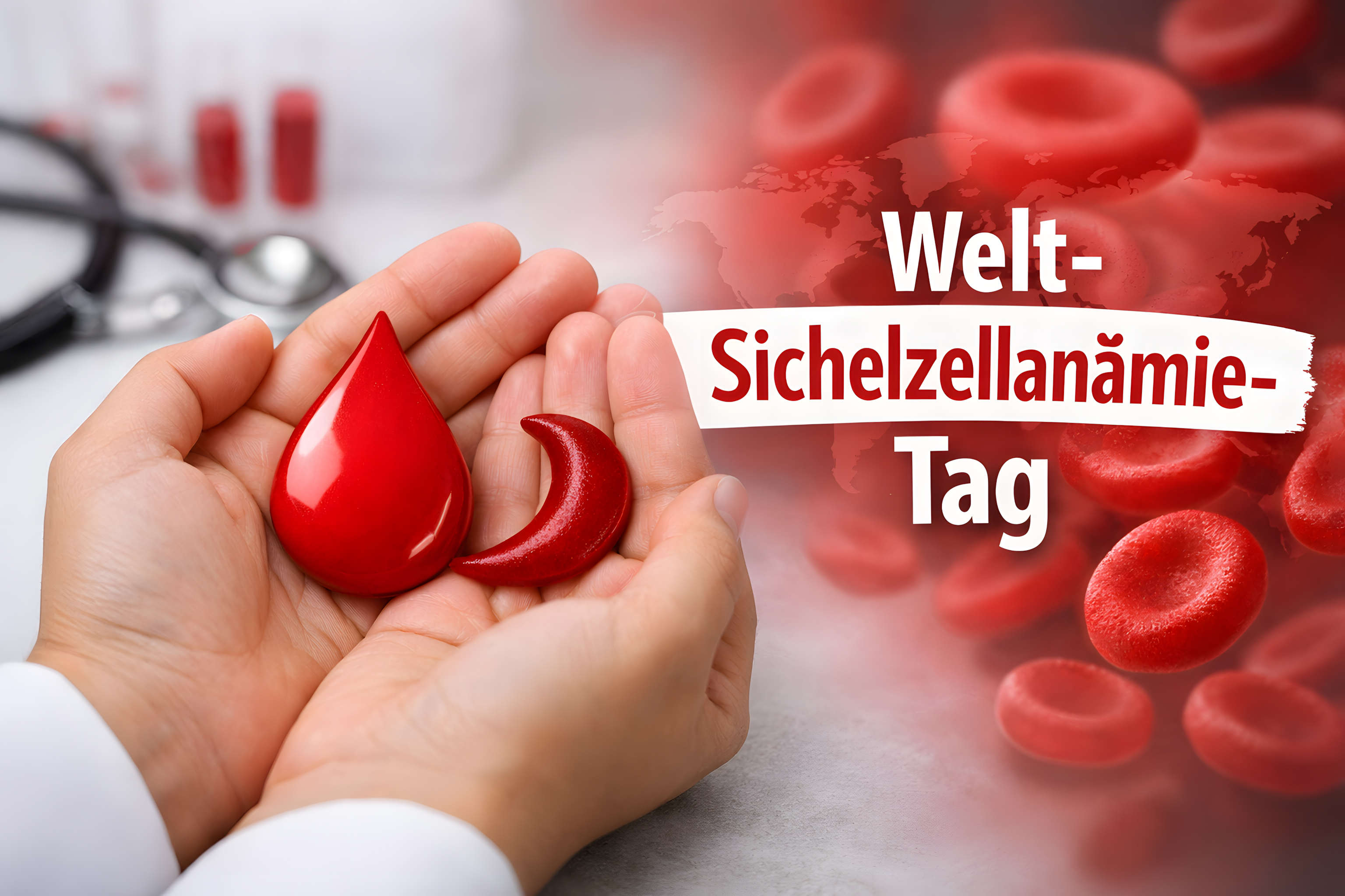 Das Foto zeigt zwei Hände, die ein rotes, herzförmiges Symbol halten. Das Symbol steht symbolisch für den Weltweiten Tag der Sichelzellenanämie, einer erblichen Blutkrankheit. Das Bild soll Aufmerksamkeit und Bewusstsein für diese Krankheit schaffen und zur Solidarität mit den Betroffenen aufrufen. Die kräftige rote Farbe des Herzens hebt die Symbolik und Bedeutung des Tages hervor. Dieses Foto eignet sich hervorragend für die Verwendung in Blogbeiträgen, Social-Media-Kanälen oder Präsentationen zum Thema Sichelzellenanämie, Medizin und Gesundheit. Es vermittelt auf eindringliche Weise die Botschaft der Unterstützung und Solidarität für Menschen mit dieser Erkrankung.