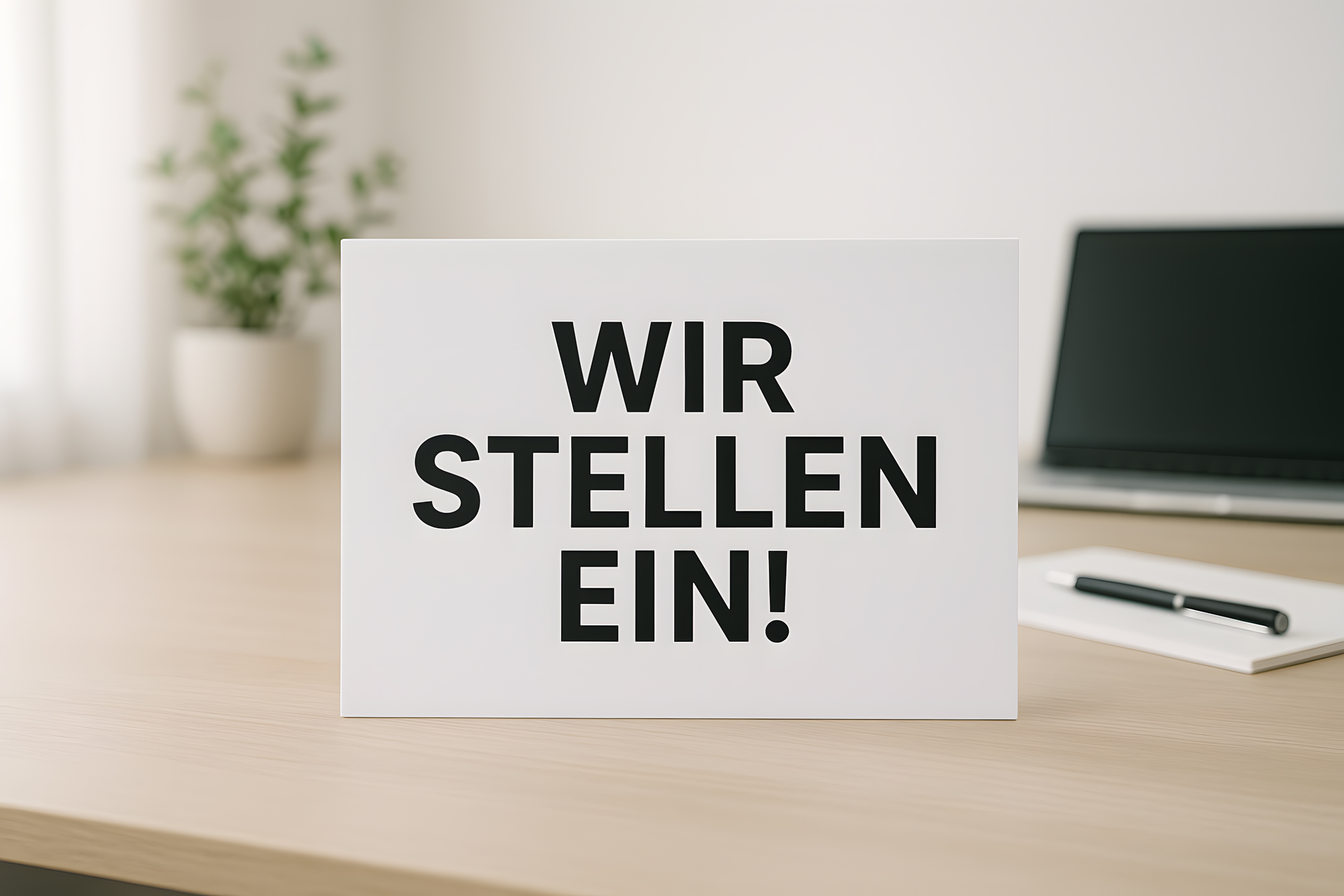 Schild mit Text Wir stellen ein auf Schreibtisch mit Laptop von Marco Verch unter Creative Commons 4.0