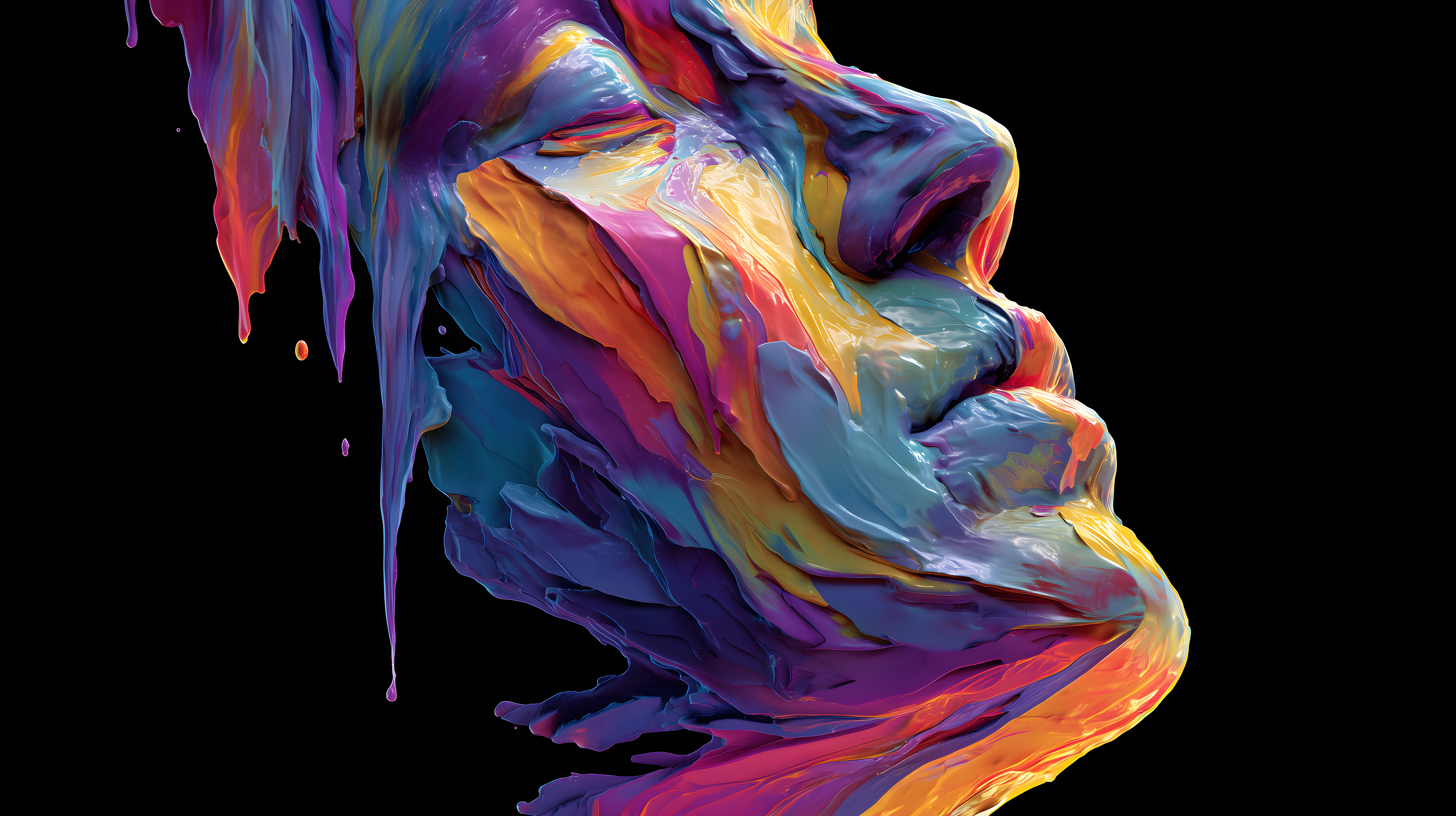 Farbige abstrakte Gesichtsskulptur mit Farbströmen von Marco Verch unter Creative Commons 4.0