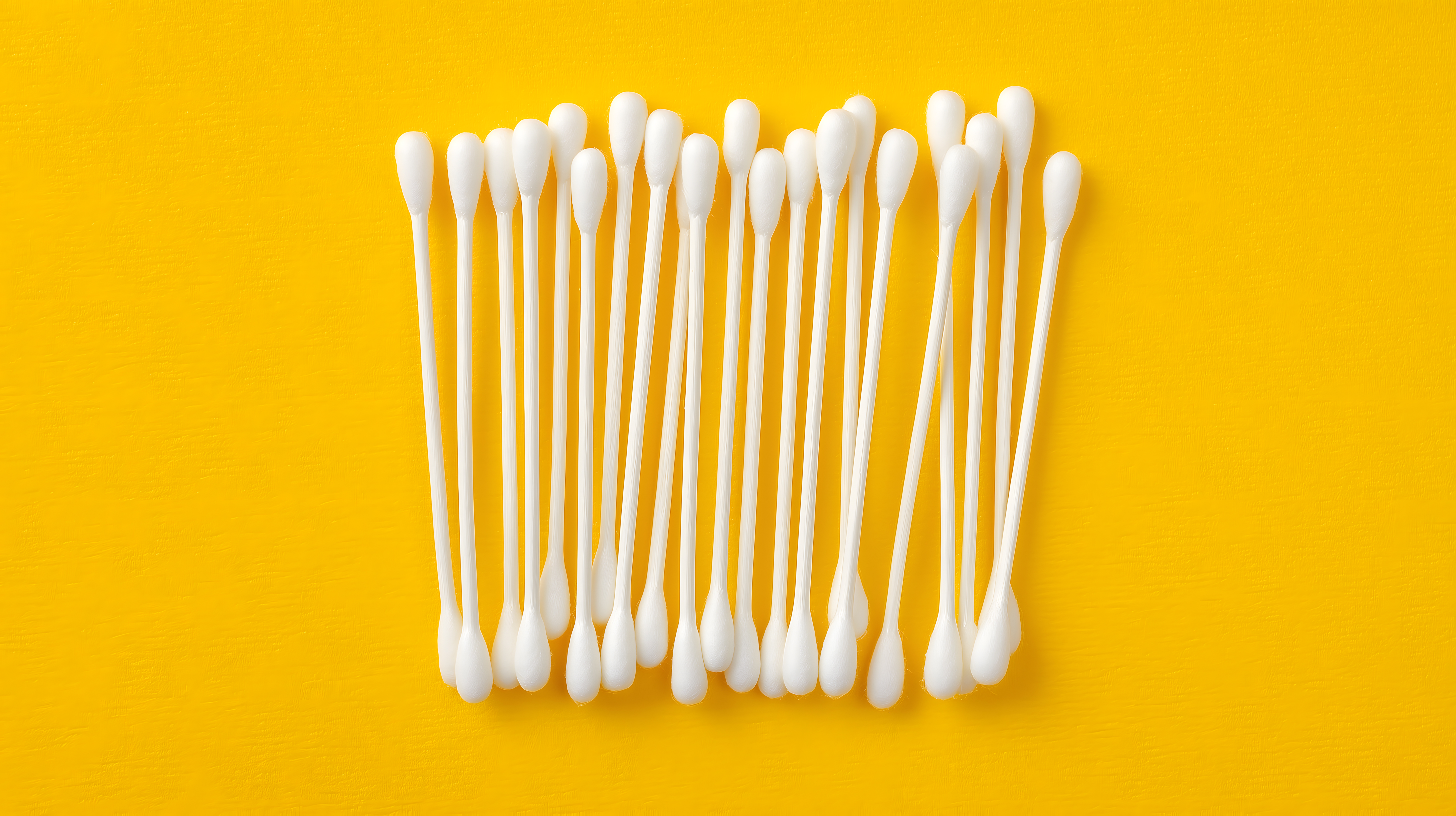 Dieses Foto zeigt eine Ansammlung von weißen Wattestäbchen, die in symmetrischer Anordnung auf einem leuchtend gelben Hintergrund platziert sind. Die klare, minimalistisch gehaltene Komposition und der kontrastreiche Farbkontrast zwischen den weißen Stäbchen und dem intensiven Gelb des Hintergrunds verleihen dem Bild eine moderne, aufgeräumte Ästhetik.