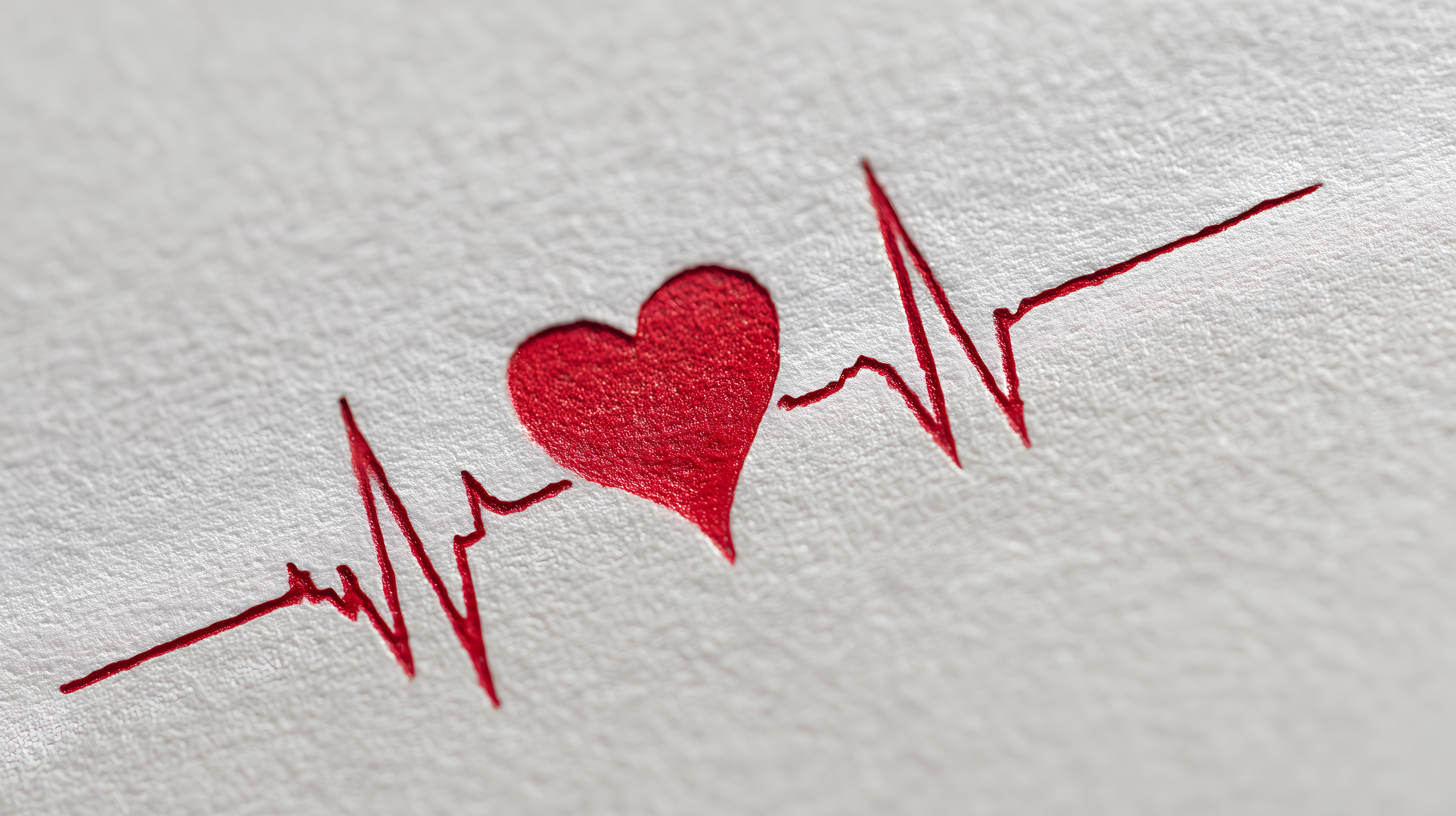 Das Bild zeigt einen roten Herzschlag auf einem weißen Hintergrund. Die Grafik ist eine Nahaufnahme und konzentriert sich auf das Herzrhythmus-Symbol, das in einem kontrastreichen Rot hervorgehoben ist. Die Komposition ist minimalistisch und leicht, was die Aufmerksamkeit des Betrachters direkt auf das Herzrhythmus-Motiv lenkt.