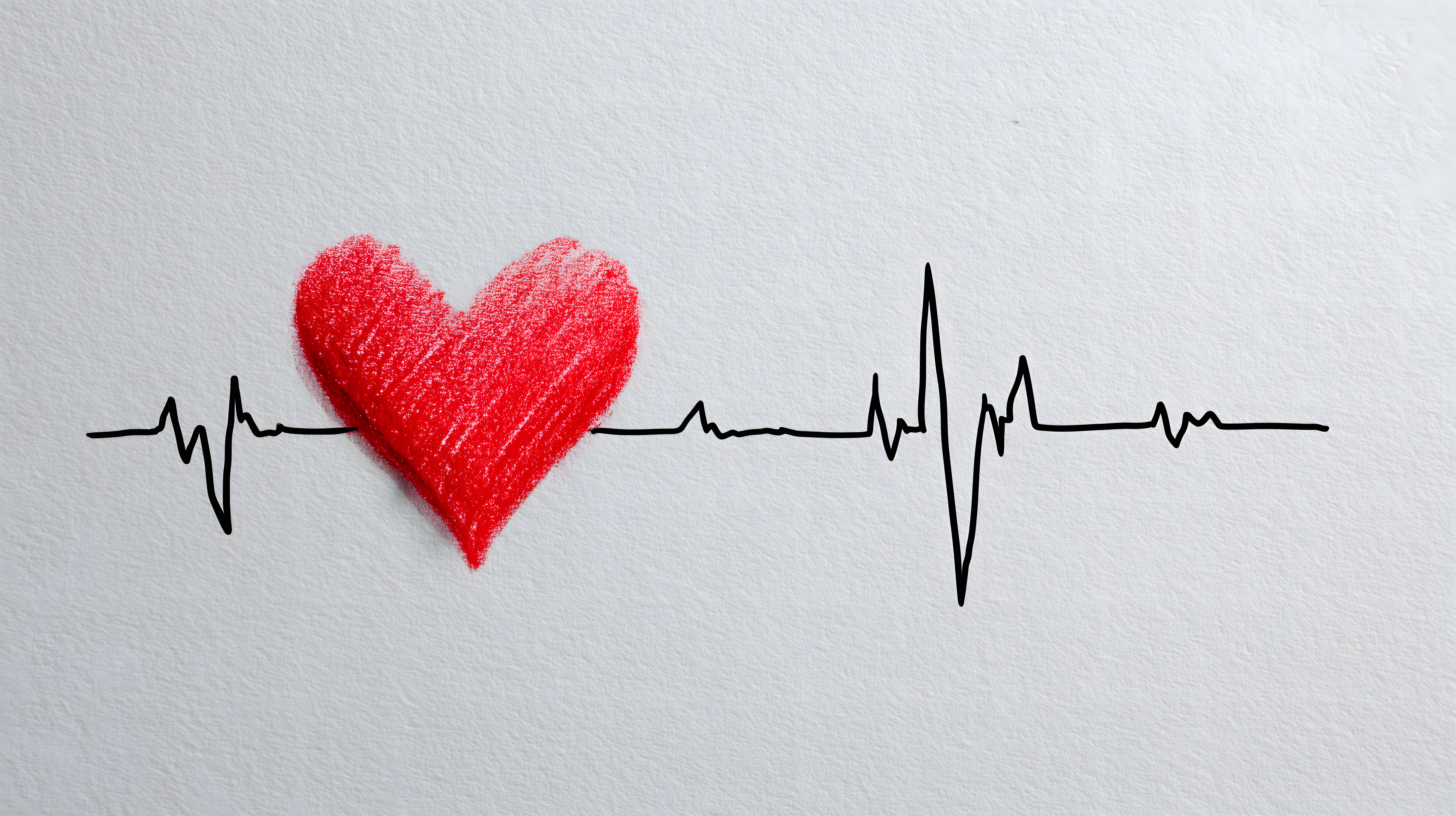 Das Bild zeigt ein rotes, stilisiertes Herz auf weißem Hintergrund, das von einer schwarzen, schlangenförmigen Herzfrequenzlinie umgeben ist. Diese Darstellung vermittelt eine visuelle Metapher für Gesundheit und Vitalität. Die Nahaufnahme und die kontraststarke Farbgebung verleihen dem Bild eine klare, minimalistische Ästhetik, die sich perfekt für den Einsatz in verschiedenen Medien wie Blogbeiträgen, Newslettern, Social-Media-Posts oder Werbematerialien eignet.