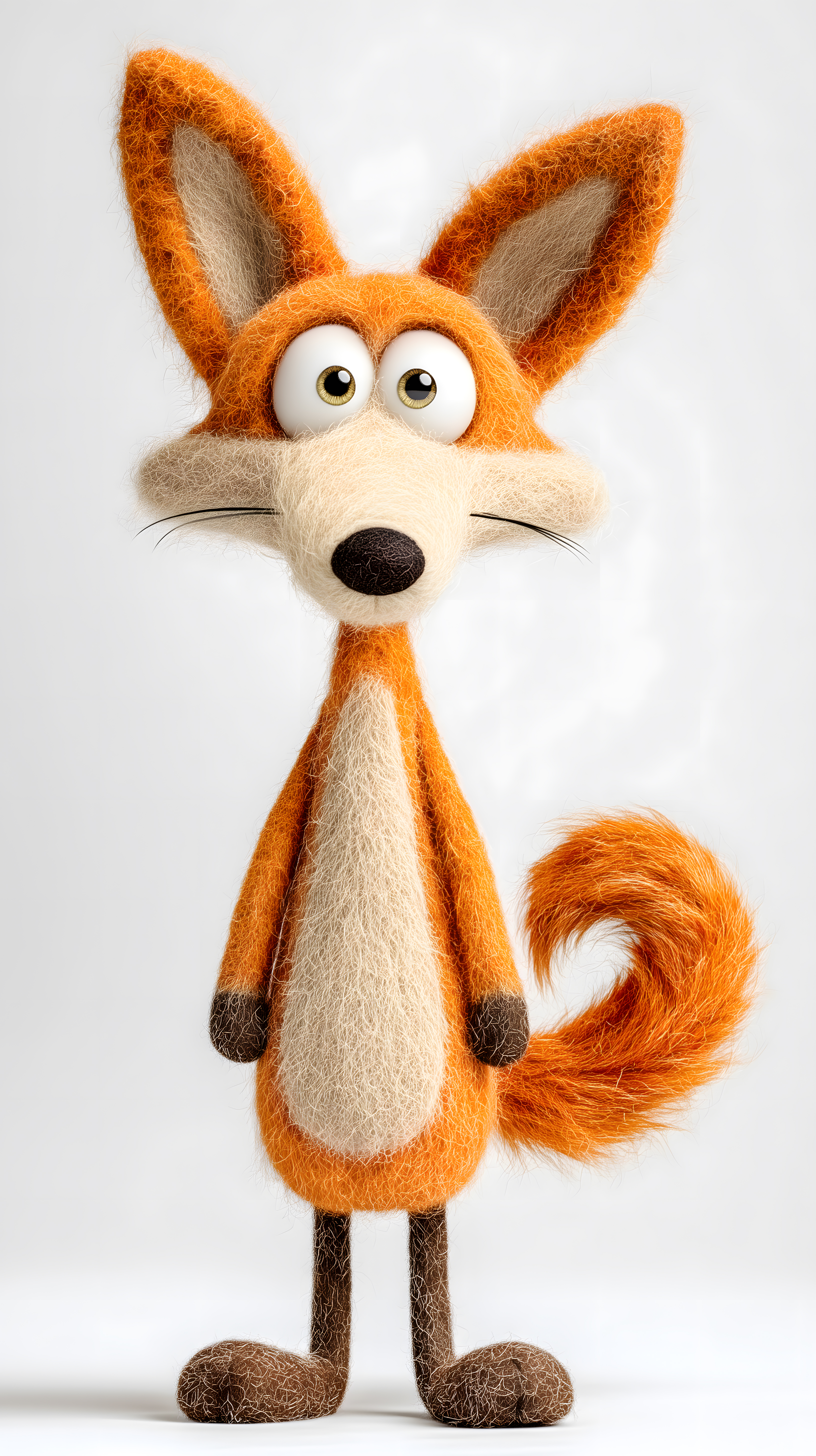 Das Bild zeigt eine detailgetreue, flauschige Darstellung eines orangefarbenen Fuchskopfes vor weißem Hintergrund. Die Nahaufnahme lässt die lebendigen Texturen und Farbschattierungen des Plüschtiers deutlich erkennen. Die klare Komposition mit dem Fokus auf das Gesicht des Fuchses schafft eine einladende, fast schon zutrauliche Atmosphäre.