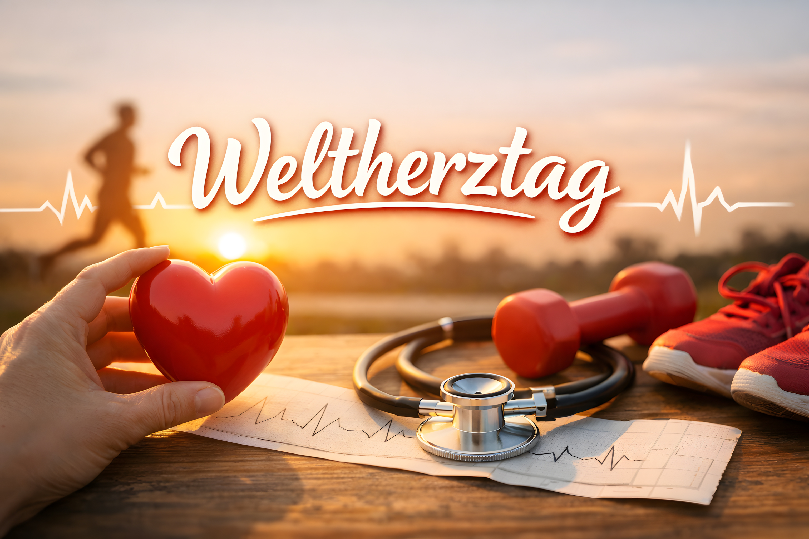 Dieses Foto zeigt einen gesunden, aktiven Lebensstil und die Bedeutung von Vorsorge für die Gesundheit. Im Vordergrund sind ein rotes Herz-Symbol und ein Stethoskop zu sehen, die für die Gesundheit und Fitness des Körpers stehen. Im Hintergrund befindet sich eine Person, die offensichtlich Sport treibt, vermutlich beim Joggen oder Walken. Die Szenerie ist von einem Sonnenuntergang umgeben, was eine beruhigende und positive Stimmung vermittelt. Dieses Bild eignet sich hervorragend für Beiträge zum Weltherztag, Blogeinträge zu Gesundheitsthemen, Social-Media-Posts zu Fitness und Prävention oder Präsentationen über Wohlbefinden und Work-Life-Balance.