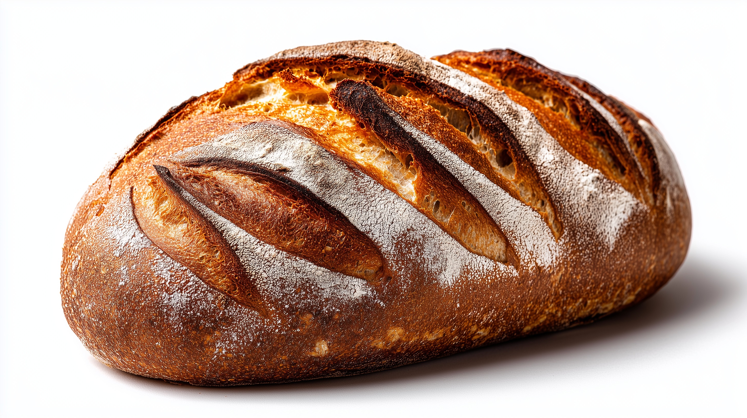 Dieses einladende Foto zeigt einen appetitlichen Bauernlaib, ein traditionell hergestelltes Brot mit einer knusprigen, goldbraunen Kruste. Die rustikale Optik, die vom Backprozess herrührenden Rillen und Furchen in der Oberfläche verleihen dem Brot einen handwerklichen, authentischen Charakter. Die Nahaufnahme rückt die faszinierende Textur und das verlockende Aroma des frisch gebackenen Brots in den Fokus. Dieses Bild ist bestens geeignet, um Beiträge in Blogs, auf Social-Media-Kanälen oder in Präsentationen zum Thema Backen, Kulinarik oder gesunde Ernährung visuell aufzuwerten. Die warme Farbpalette und der klare Kontrast zwischen Kruste und Krume machen das Foto zu einem stimmungsvollen, appetitanregenden Eyecatcher.