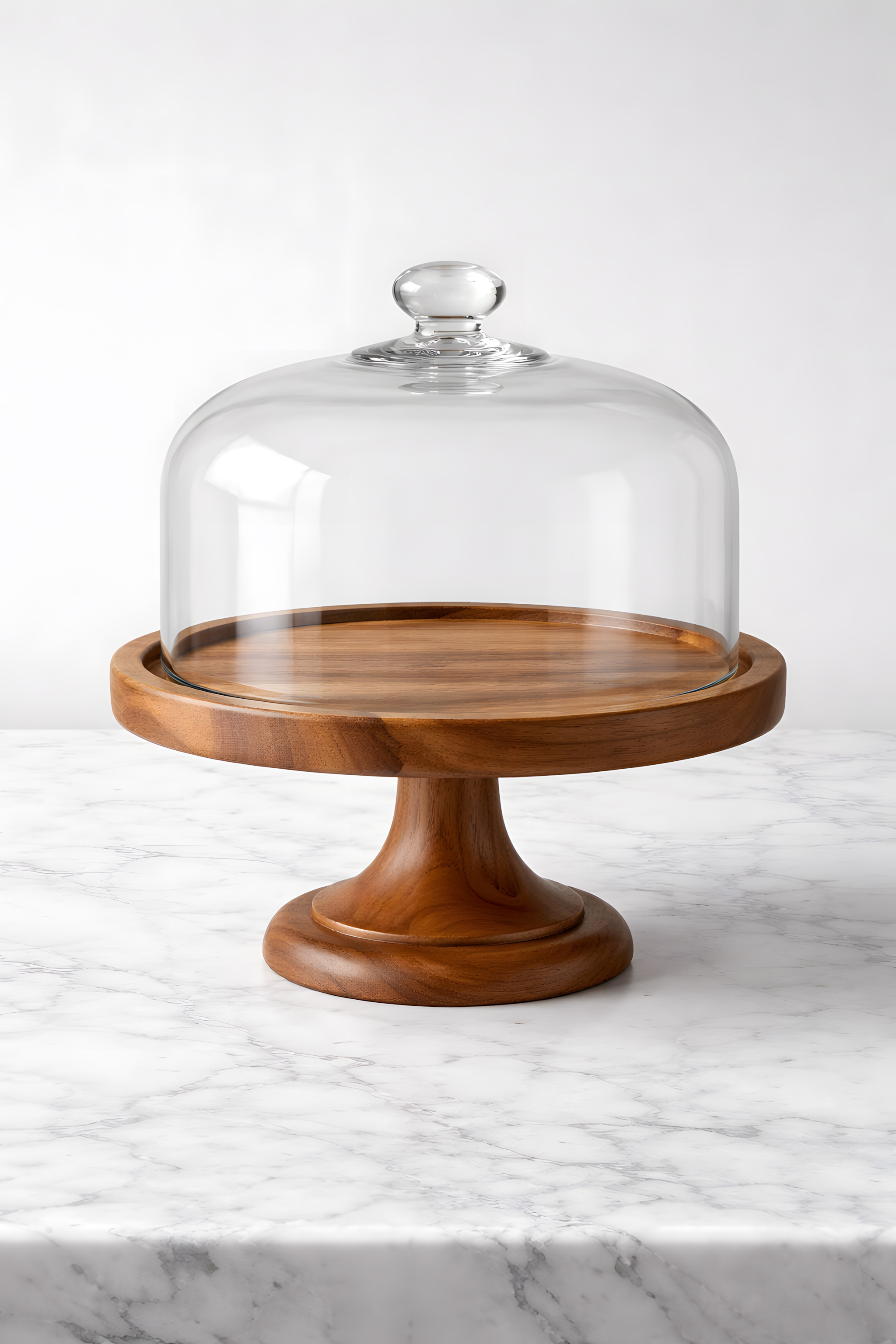 Dieses stilvolle Foto zeigt eine elegante Glasglocke, die auf einem runden Holztablett platziert ist. Die Glasglocke ist klar und transparent, sodass der Blick auf die Oberfläche des Tabletts frei ist. Dieser besteht aus hellem, hochwertigem Holz, das einen schönen Kontrast zur Glasglocke bildet. Die Komposition ist minimalistisch und modern, mit klaren Formen und Linien. Diese Kombination aus Glas und Holz verleiht dem Arrangement eine zeitlose Ästhetik und Funktionalität, die sich perfekt für eine Präsentation, Ausstellung oder Tischdekoration eignet. Das Foto kann beispielsweise in Blogs, auf Social-Media-Kanälen oder in Newslettern verwendet werden, um Produkte oder Dienstleistungen in einem stilvollen Umfeld darzustellen.
