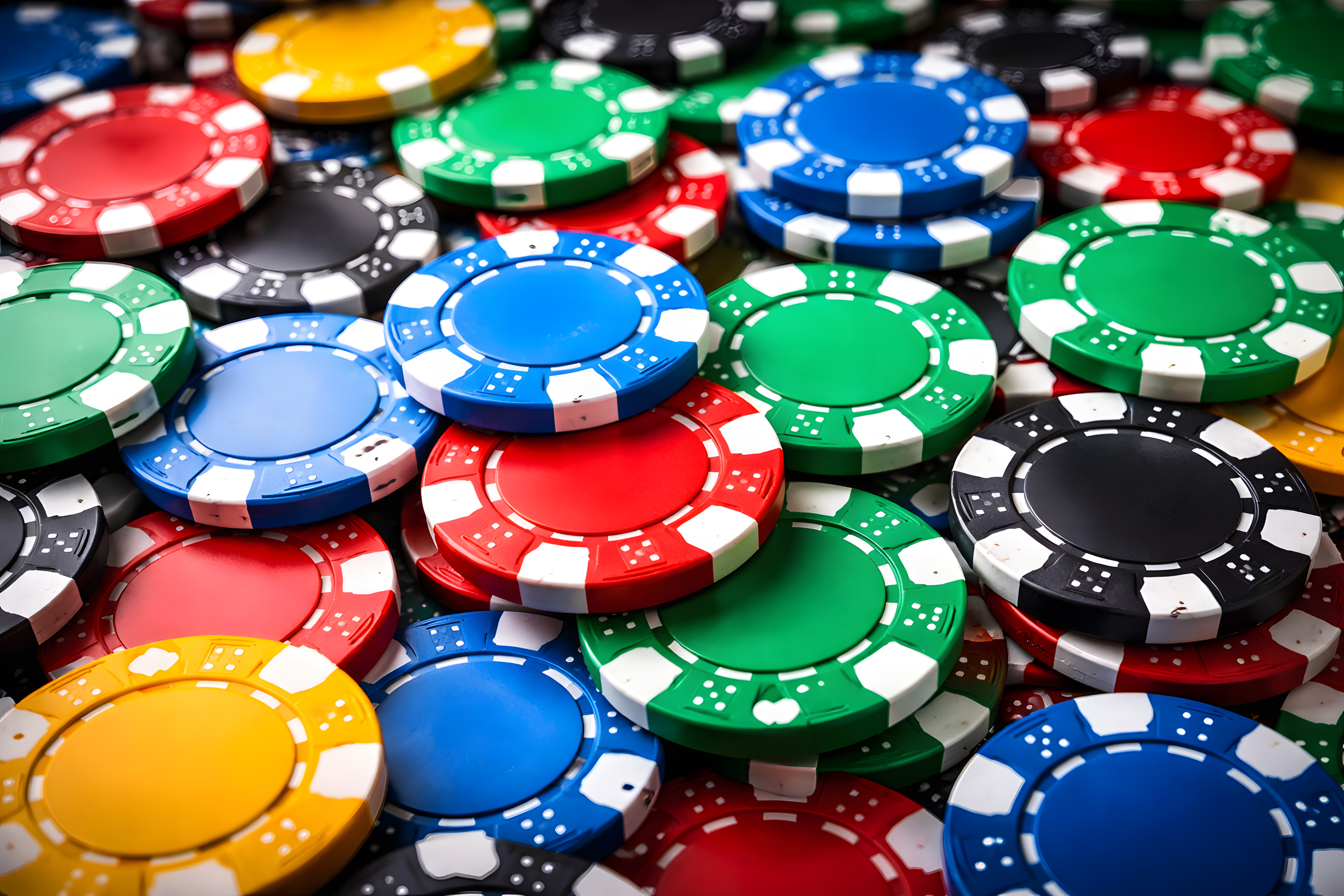 Dieses farbenfrohe Foto zeigt eine große Ansammlung von Spielchips in verschiedenen Farben und Formen. Die Chips sind in einer ungeordneten Komposition übereinandergestapelt, was einen dynamischen und lebendigen Eindruck vermittelt. Die Farbpalette reicht von kräftigem Rot und Blau über leuchtendes Gelb bis hin zu sattem Grün, was dem Bild eine hohe visuelle Attraktivität verleiht.
