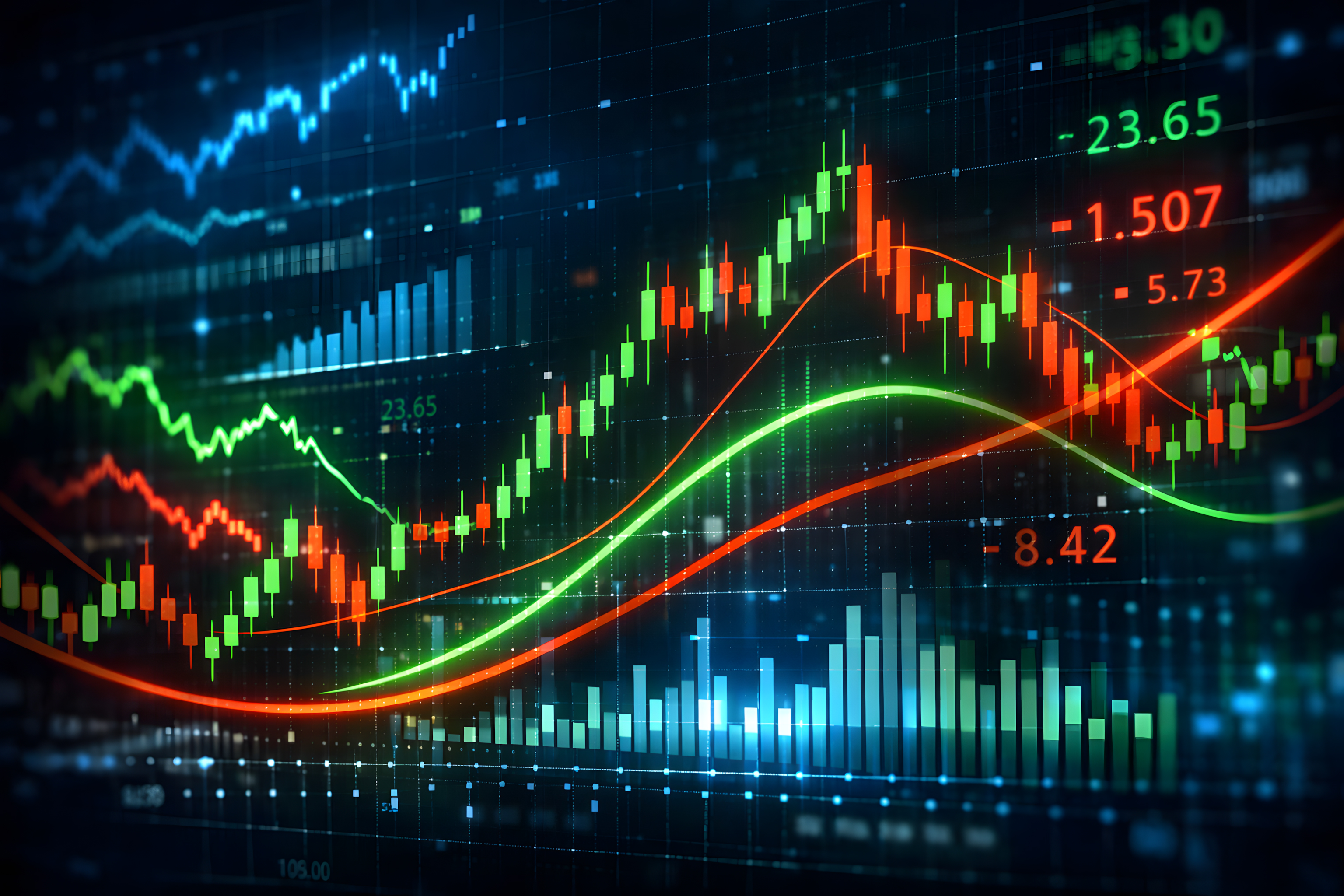 Das Foto zeigt einen dynamischen Börsenhandelsverlauf mit verschiedenen Statistiken und Kurskurven. Im Vordergrund ist ein Liniendiagramm zu sehen, das den Kursverlauf eines Finanzwerts über einen bestimmten Zeitraum anzeigt. Daneben befinden sich weitere Grafiken und Zahleninformationen, die verschiedene Finanzkennzahlen und Markttrends visualisieren. Die Darstellung ist modern, technisch und vermittelt einen Eindruck von der Komplexität und Dynamik der Finanzmärkte. Das Bild könnte ideal für Präsentationen, Finanzberichte, Blogs oder Social-Media-Kanäle zum Thema Investing, Aktienhandel oder Unternehmensfinanzen eingesetzt werden. Es vermittelt Professionalität, Kompetenz und Expertise in diesem Bereich.