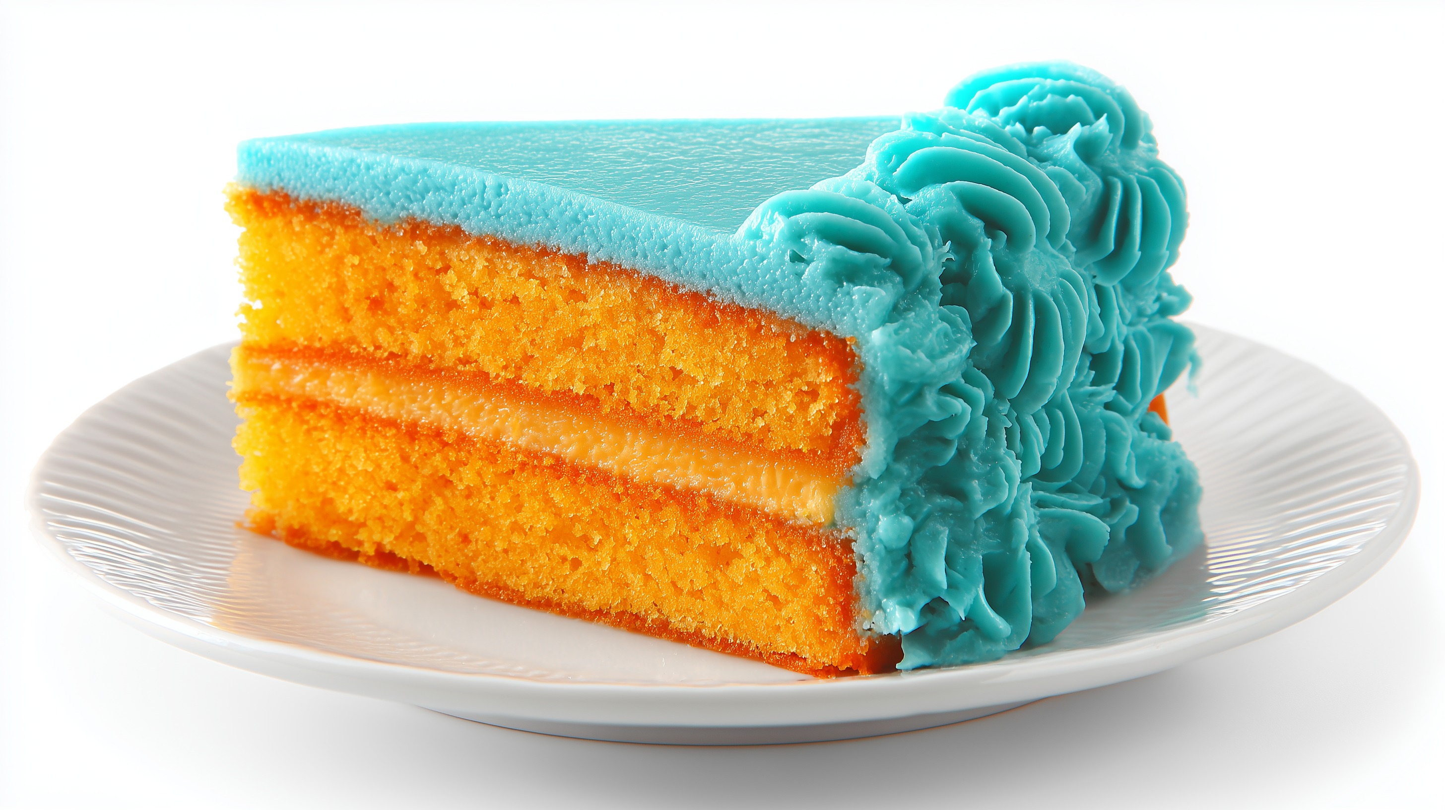 Das Foto zeigt eine köstliche, zweifarbige Torte, die Geschmack und Genuss verspricht. Die Oberfläche ist mit einer türkisblauen, cremigen Masse überzogen, die schöne Verzierungen formt. Darunter kommt ein saftig-orangenes Biskuit zum Vorschein, das perfekt mit der Sahne-Creme harmoniert. Die Torte strahlt Eleganz und Raffinesse aus und weckt unweigerlich Appetit. Sie eignet sich hervorragend als Blickfang für Foodblogs, Social-Media-Posts oder Präsentationen zum Thema Backen, Desserts und gehobene Küche. Mit ihrer intensiven Farbgebung und dem stilvollen Dekor verleiht sie jeder Darstellung einen besonderen, hochwertigen Charakter.