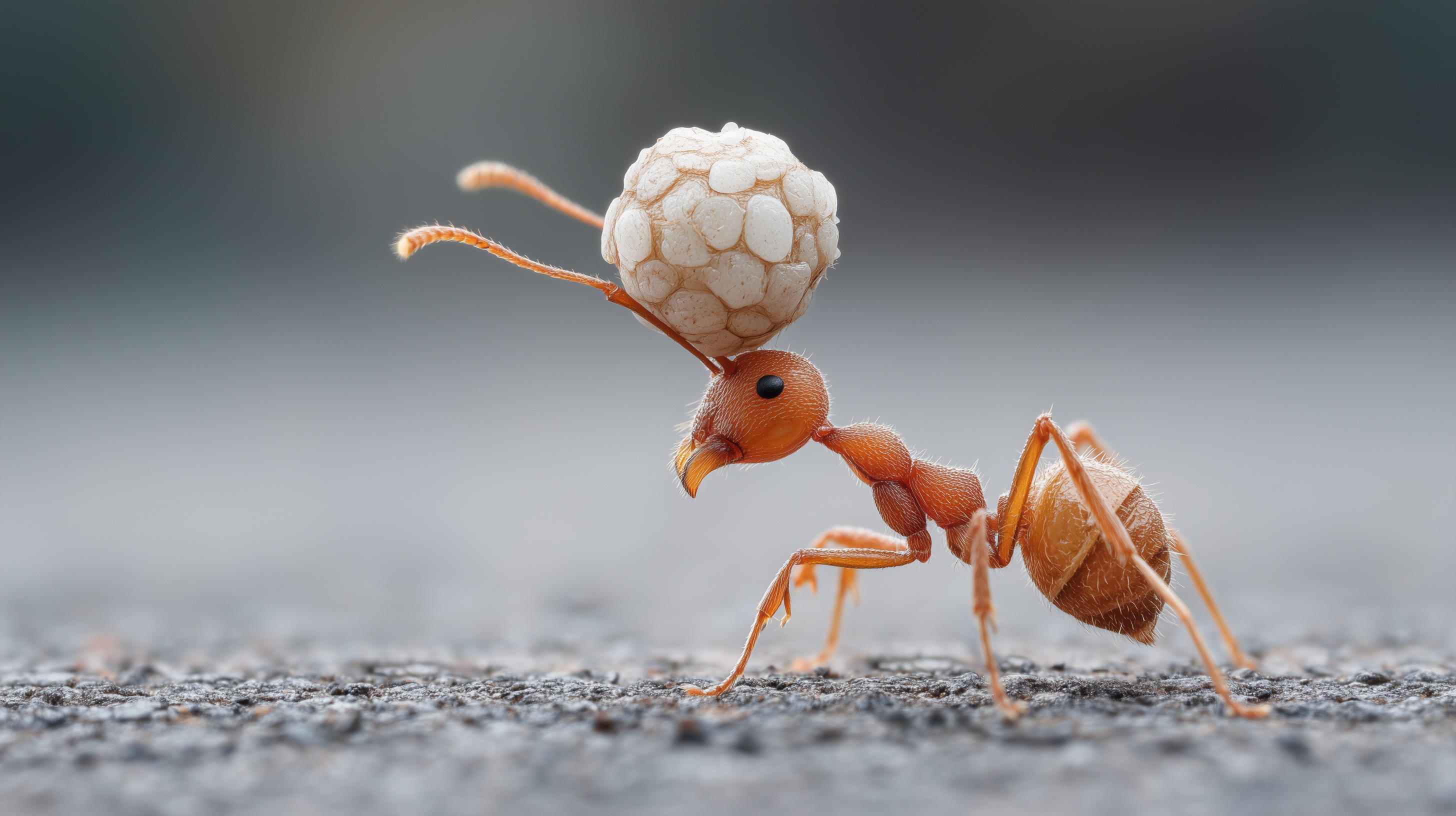 Dieses faszinierende Foto zeigt eine seltene und außergewöhnliche Variante einer Ameise: den Ameisenwächter. Mit seiner markanten, wabenartigen Kappe auf dem Rücken hebt sich das Insekt deutlich von gewöhnlichen Ameisen ab. In kräftigem Orange und Braun kontrastiert der Körper des Ameisenwächters eindrucksvoll mit dem grauen, strukturierten Untergrund, auf dem er sich befindet. Die scharfe Fokussierung und der freie Hintergrund lenken den Blick gezielt auf das Insekt und lassen seine faszinierende Anatomie und Textur perfekt zur Geltung kommen. Dieses Bild eignet sich hervorragend für den Einsatz in Blogs, Präsentationen oder auf Social-Media-Kanälen, um Betrachter für die Schönheit und Vielfalt der Natur zu begeistern.