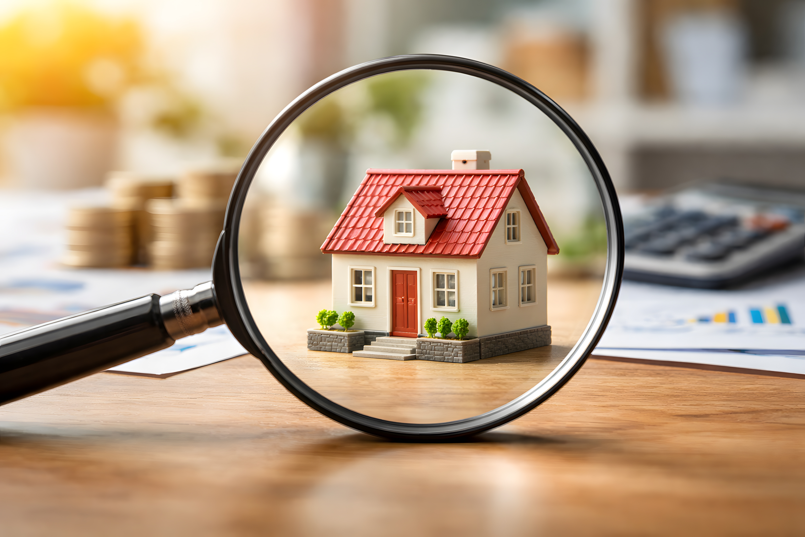 Die Komposition mit Vordergrund-Lupe und verschwommenem Hintergrund erzeugt eine klare Tiefenwirkung und lenkt den Blick gezielt auf das Hauptmotiv. Das Bild eignet sich hervorragend für Blogartikel rund um Immobilienkauf, Hausfinanzierung und Wohnungsmarkt sowie für Social-Media-Beiträge von Maklern, Banken oder Finanzberatern. Auch für Newsletter, Präsentationen oder Websiteheader zu Themen wie Eigenheim, Hypothek und Immobilienbewertung ist dieses Foto ideal einsetzbar.