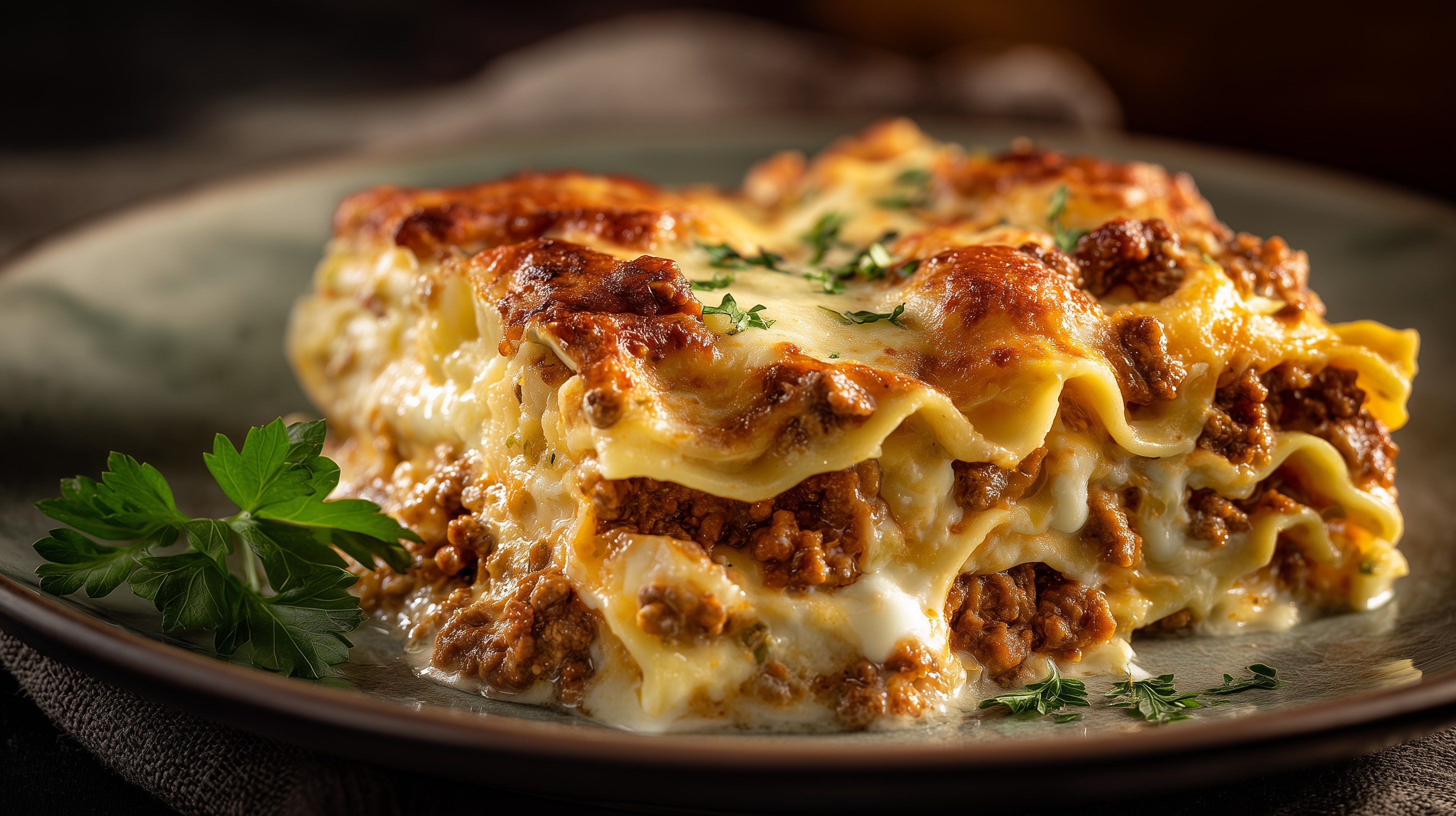 - Backen: Die Lasagne im vorgeheizten Ofen ca. 35–40 Minuten backen, bis die Oberfläche goldbraun und leicht gebräunt ist. Anschließend 10 Minuten ruhen lassen, damit sie sich besser schneiden lässt.