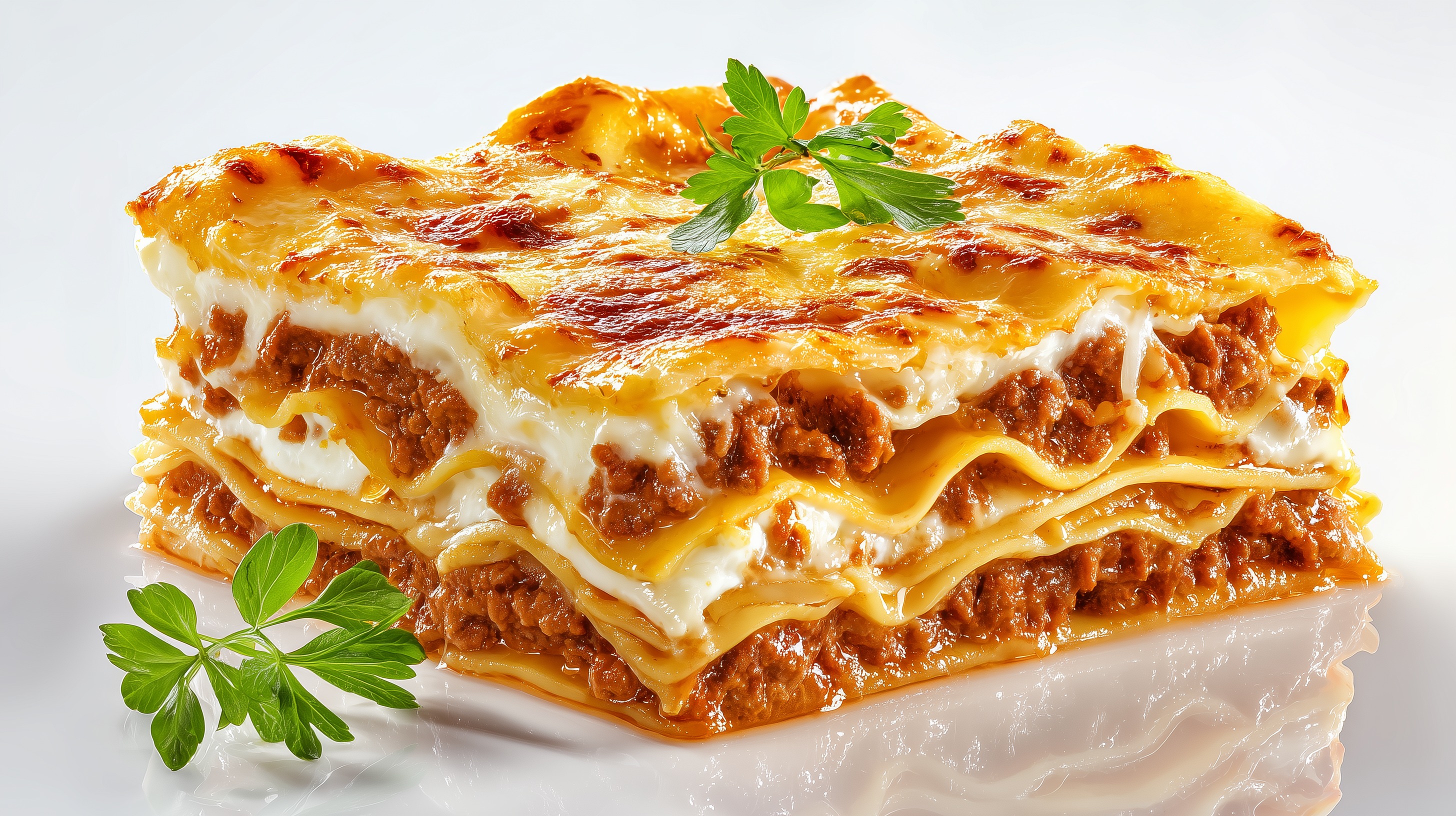 - Die Lasagne im vorgeheizten Ofen ca. 35–40 Minuten backen, bis die Oberfläche goldbraun und leicht gebräunt ist. Falls die Oberfläche zu schnell bräunt, mit Alufolie abdecken.