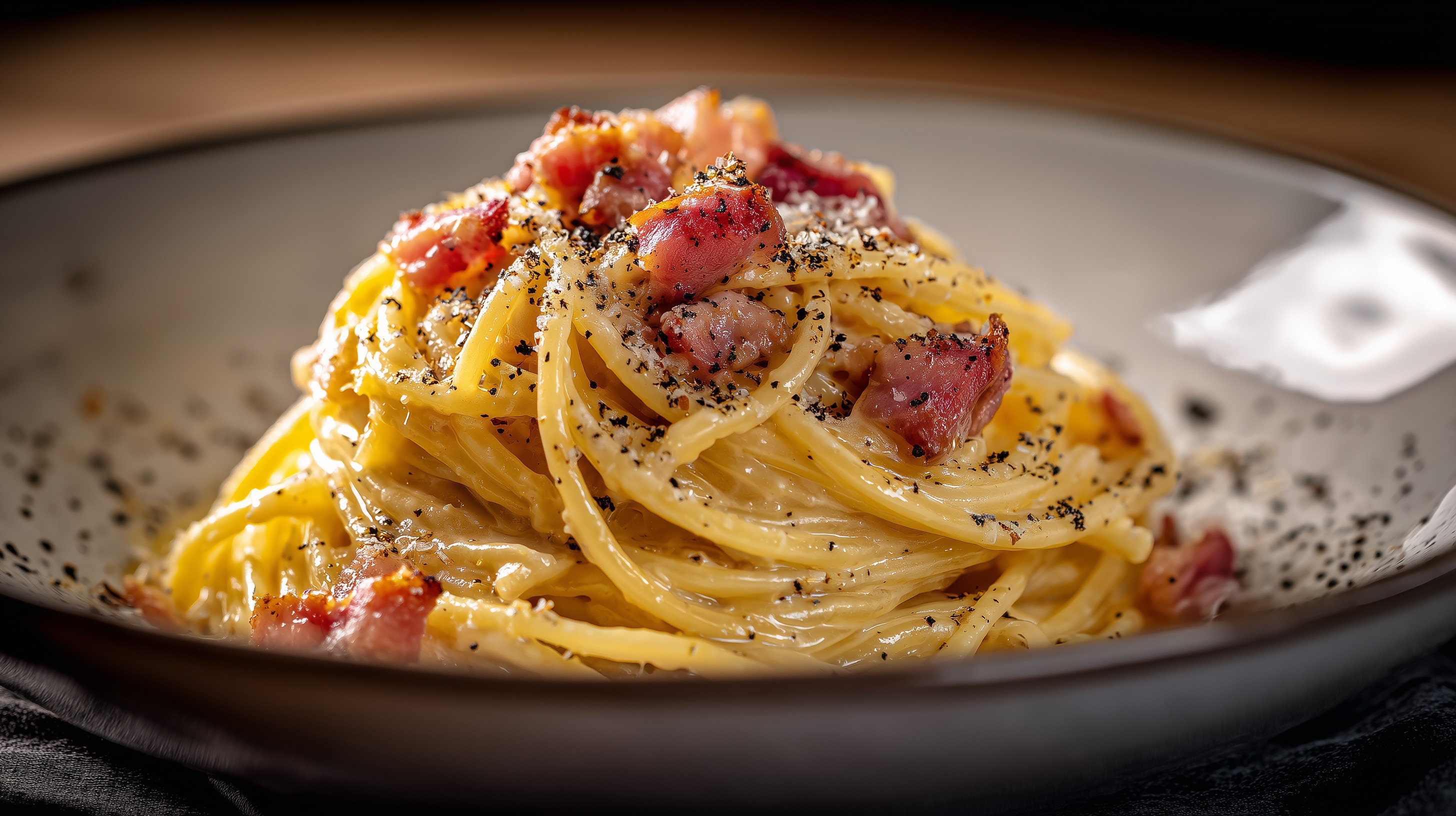 Tipp: Der wichtigste Schritt ist, die Pfanne vom Herd zu nehmen, bevor die Ei-Sauce hinzugegeben wird – nur die Restwärme der Pasta sorgt für die cremige Konsistenz. Wer keinen Guanciale bekommt, kann auf Pancetta zurückgreifen, aber niemals auf normalen Speck. Echte Carbonara enthält weder Sahne noch Zwiebeln!