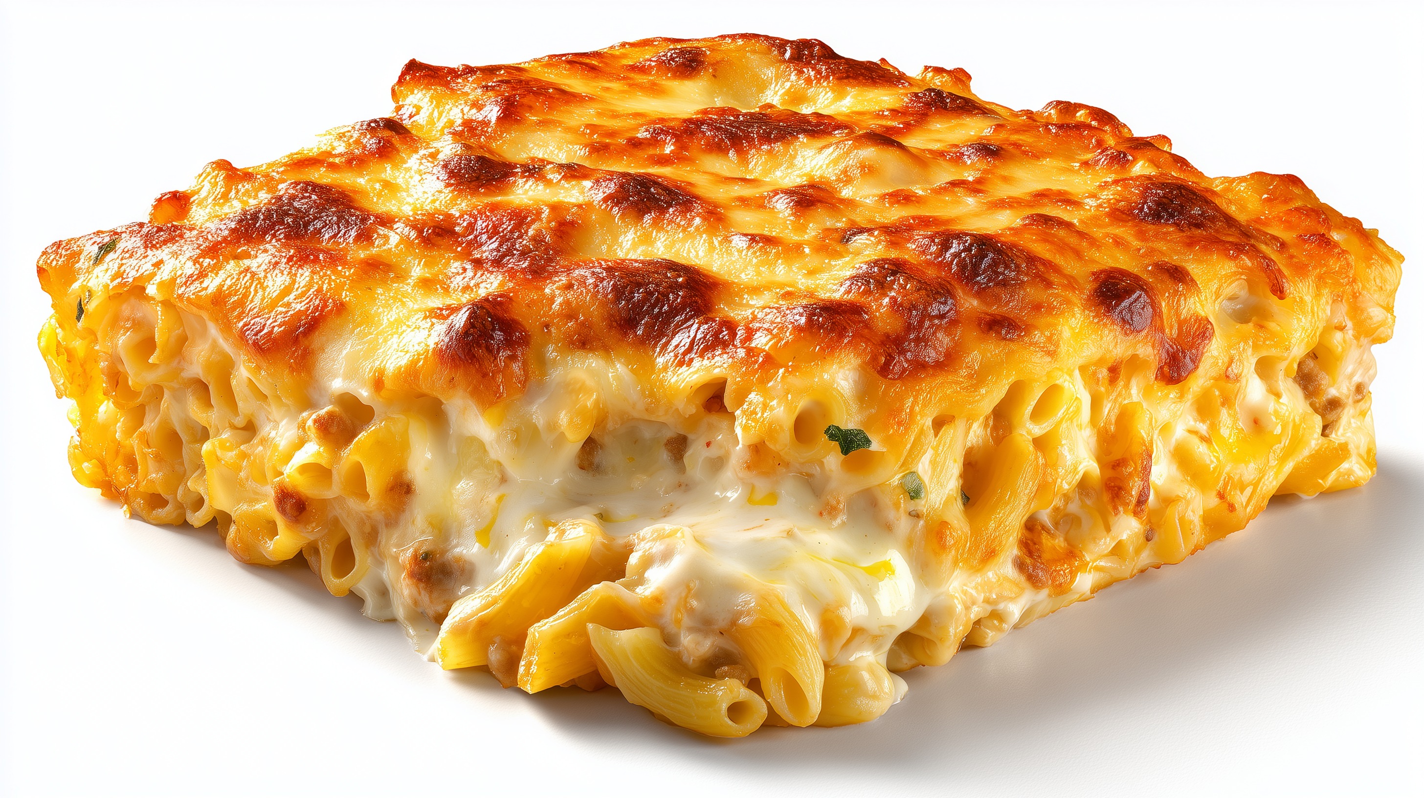 - Den Auflauf im vorgeheizten Ofen ca. 20–25 Minuten backen, bis die Käsekruste goldbraun und leicht gebräunt ist.