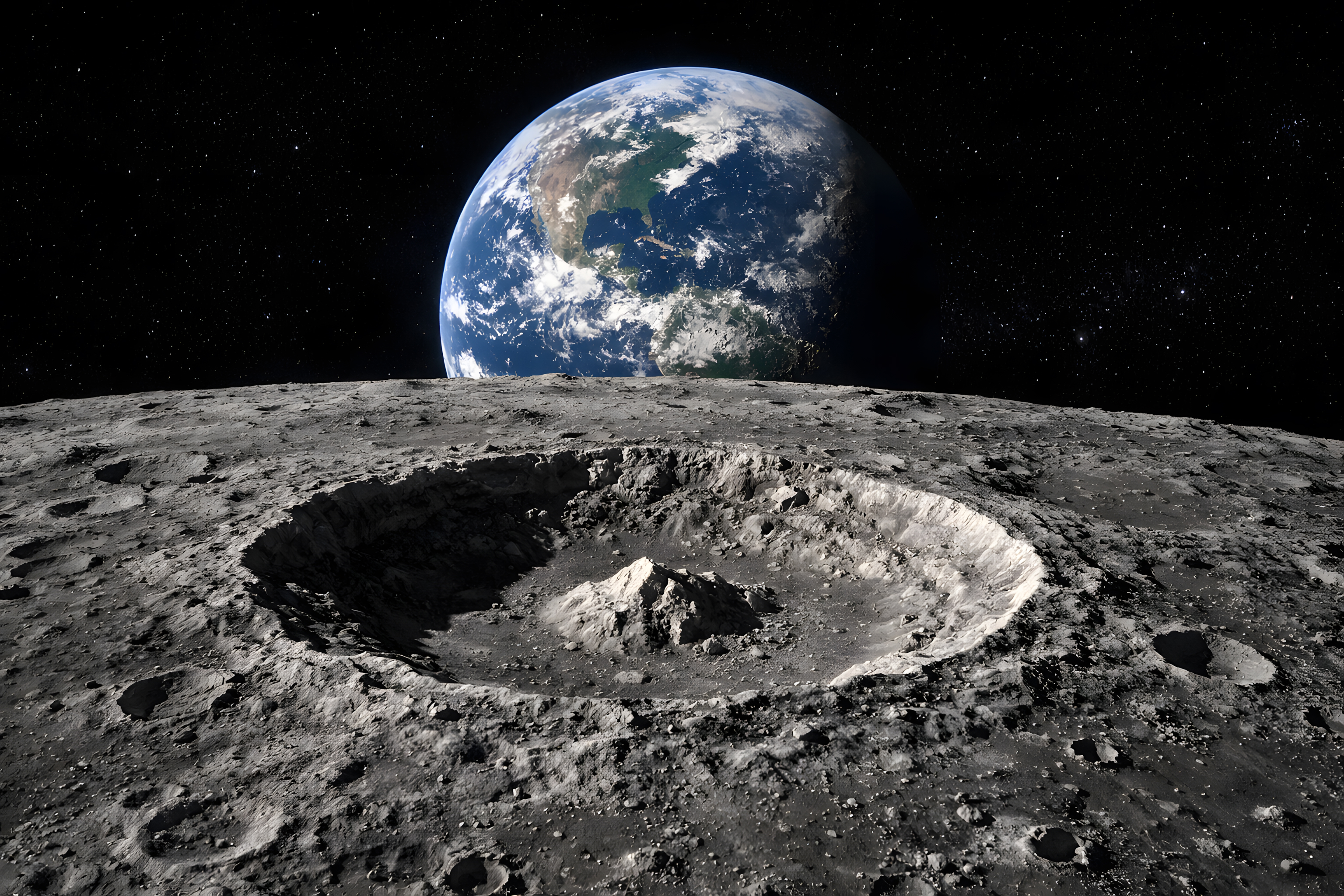 Mondkrater mit Erde im Hintergrund aus dem All von Marco Verch unter Creative Commons 4.0