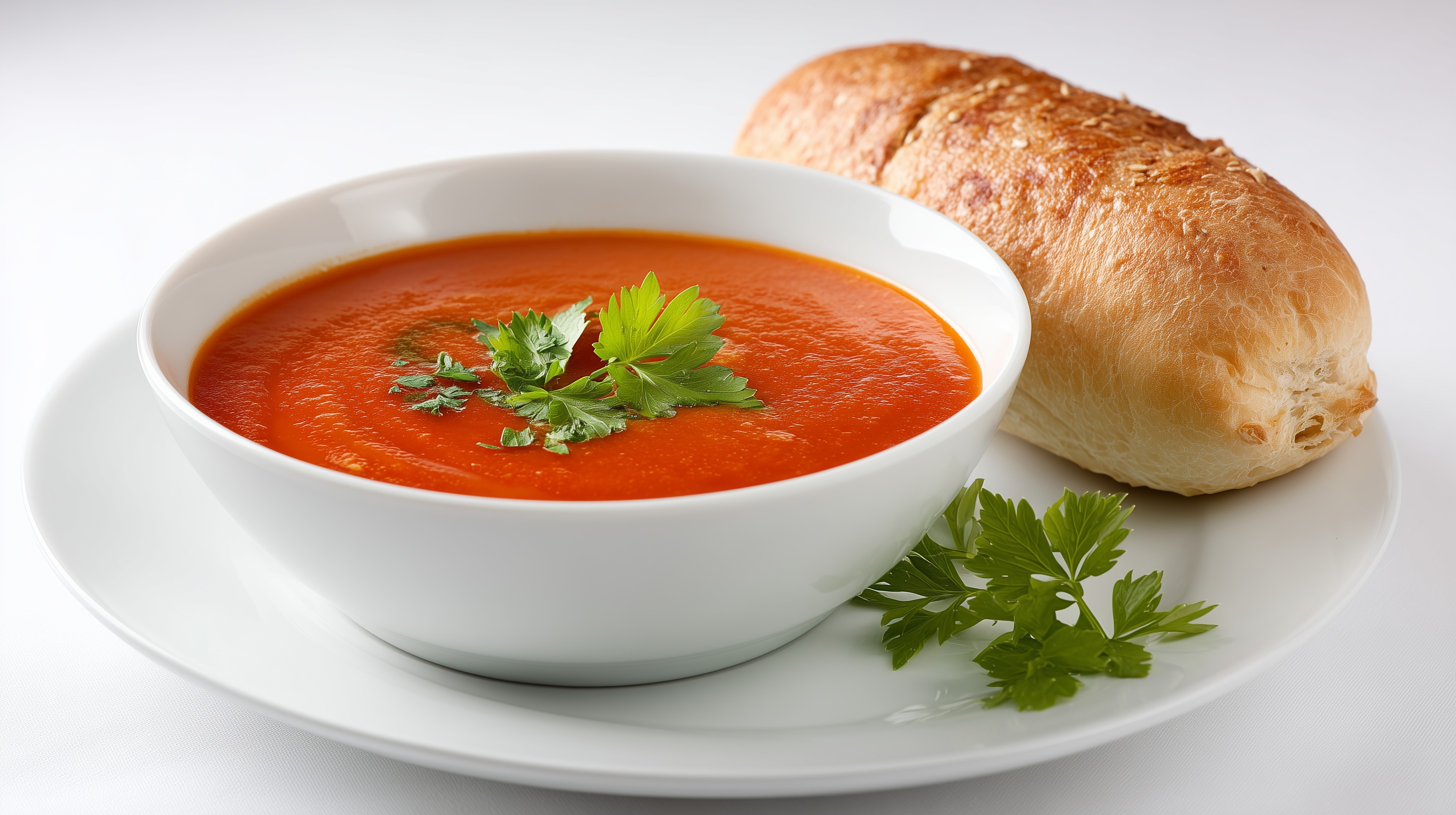 Cremige Tomatensuppe mit Brötchen und Petersilie von Marco Verch unter Creative Commons 4.0