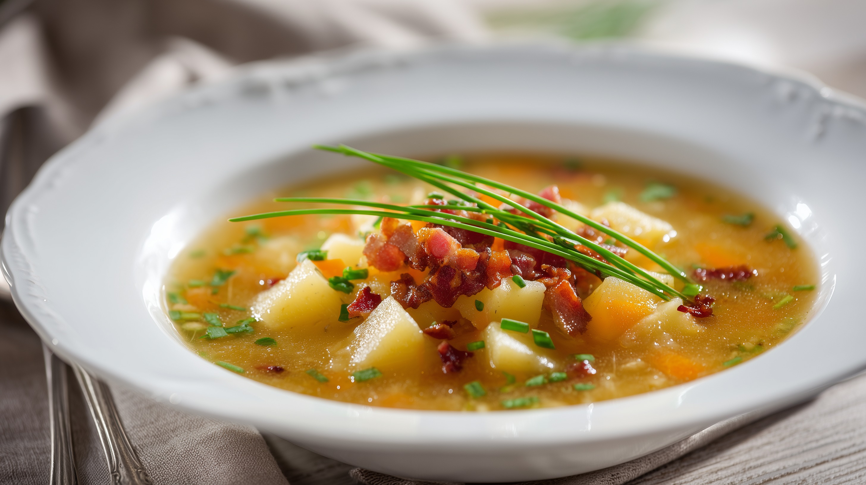 Einfache Kartoffelsuppe mit Speck und Schnittlauch von Marco Verch unter Creative Commons 4.0