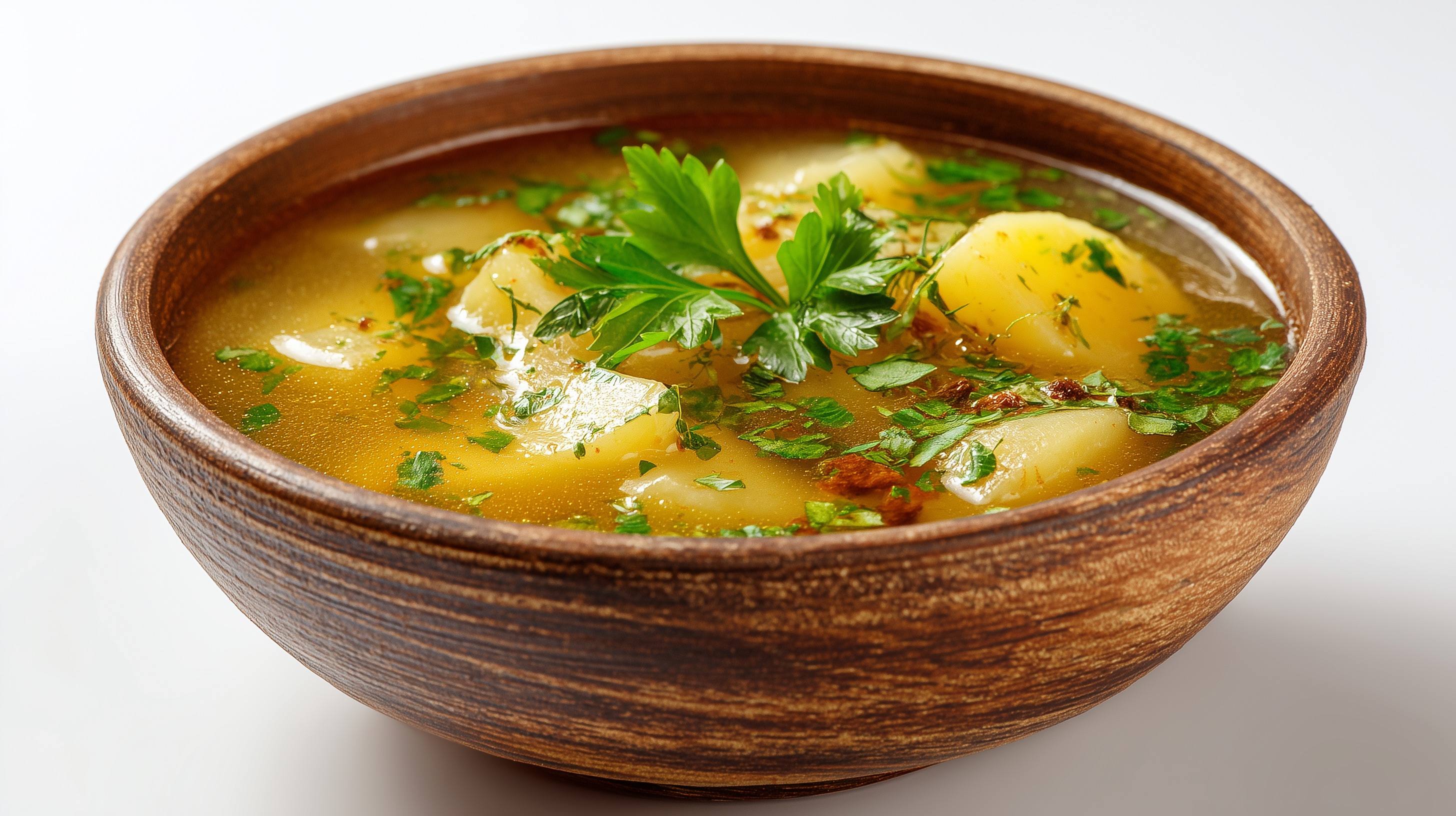 Kartoffelsuppe mit Petersilie in Holzschüssel von Marco Verch unter Creative Commons 4.0