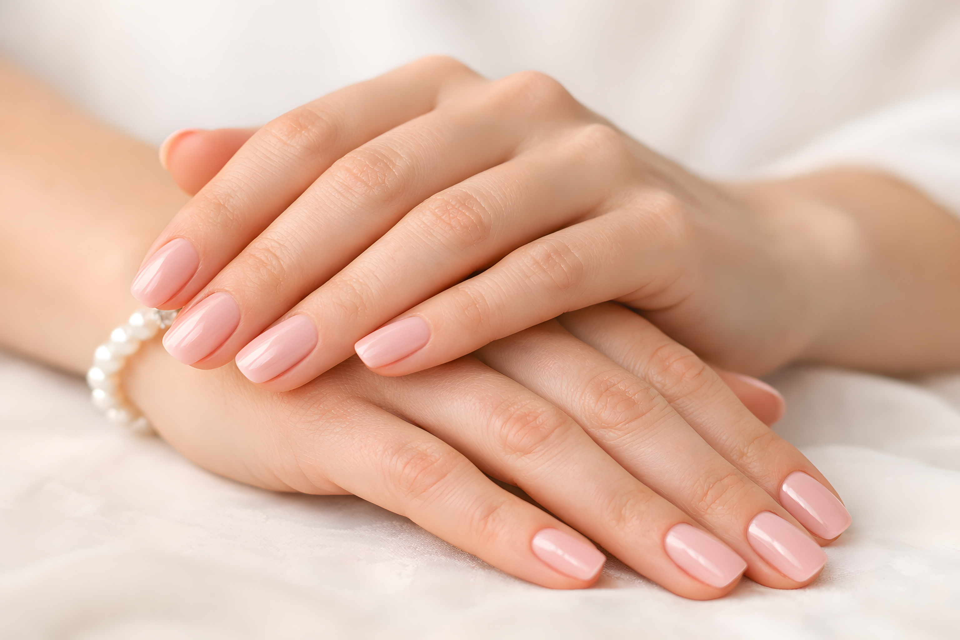 Gepflegte Hände mit zartrosa Gelnägeln und Perlenarmband von Marco Verch unter Creative Commons 4.0