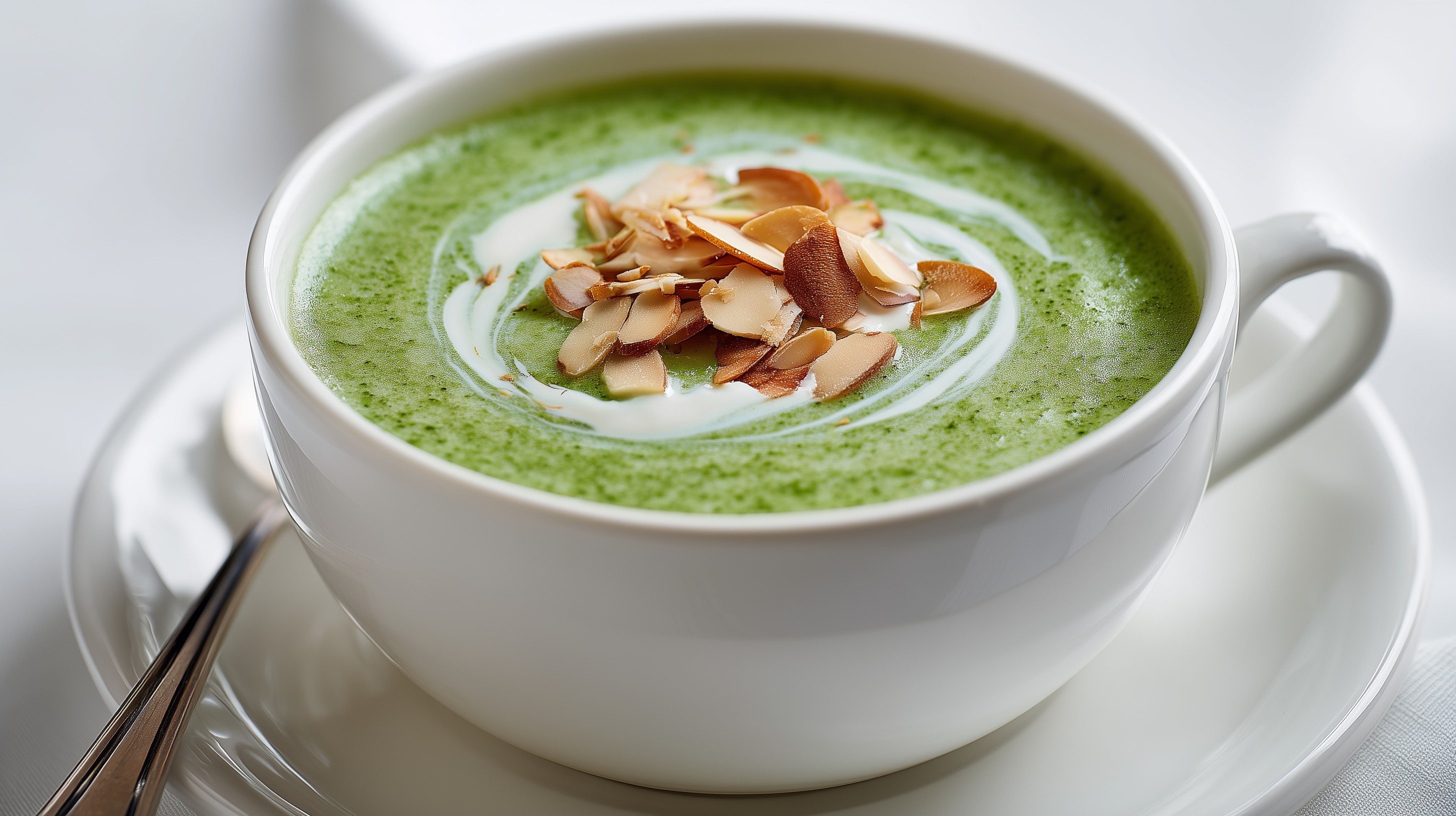 Cremige Brokkolisuppe mit Mandeln und Sahnewirbel von Marco Verch unter Creative Commons 4.0