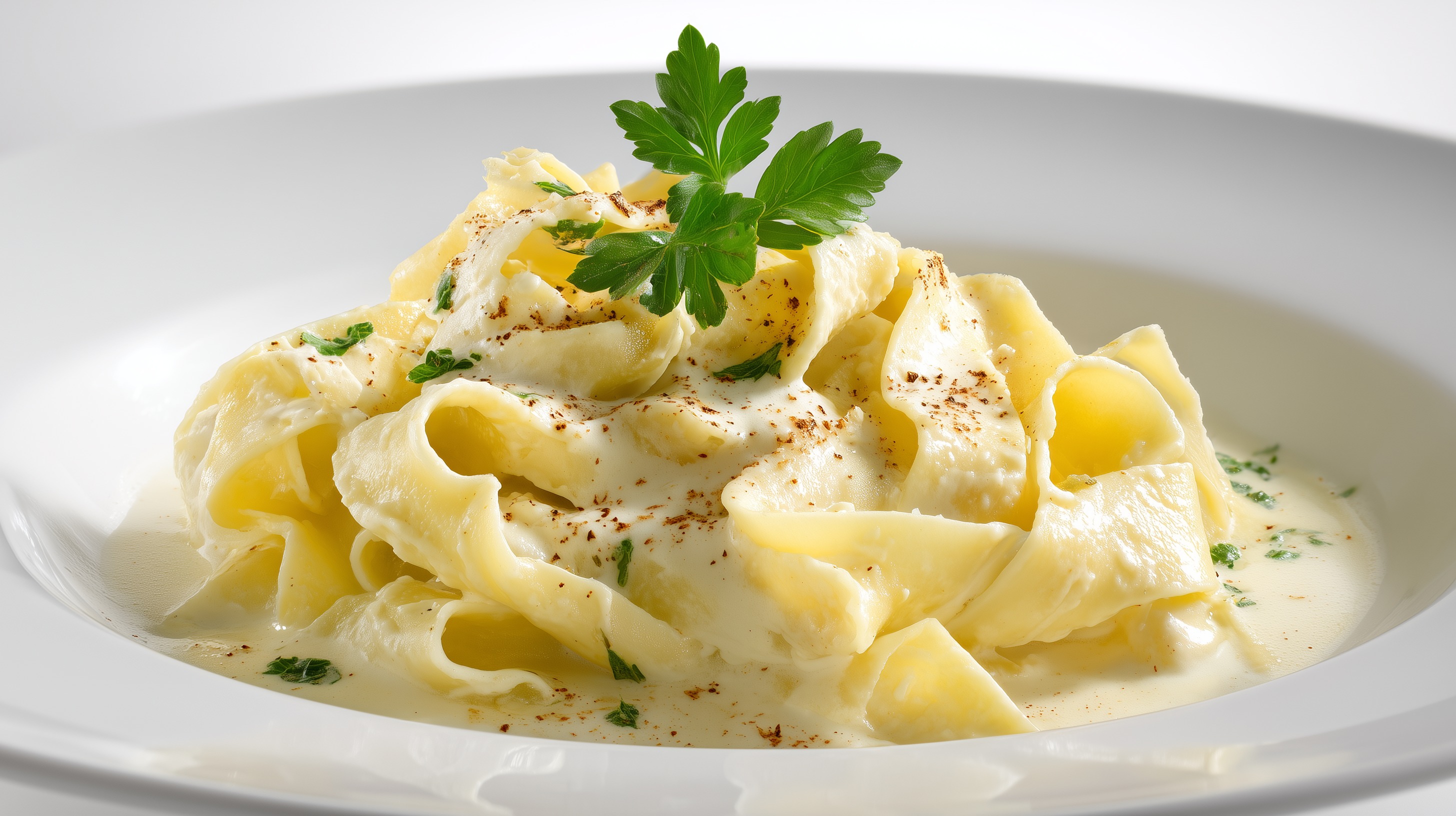 Bandnudeln in cremiger Käsesoße mit Petersilie von Marco Verch unter Creative Commons 4.0