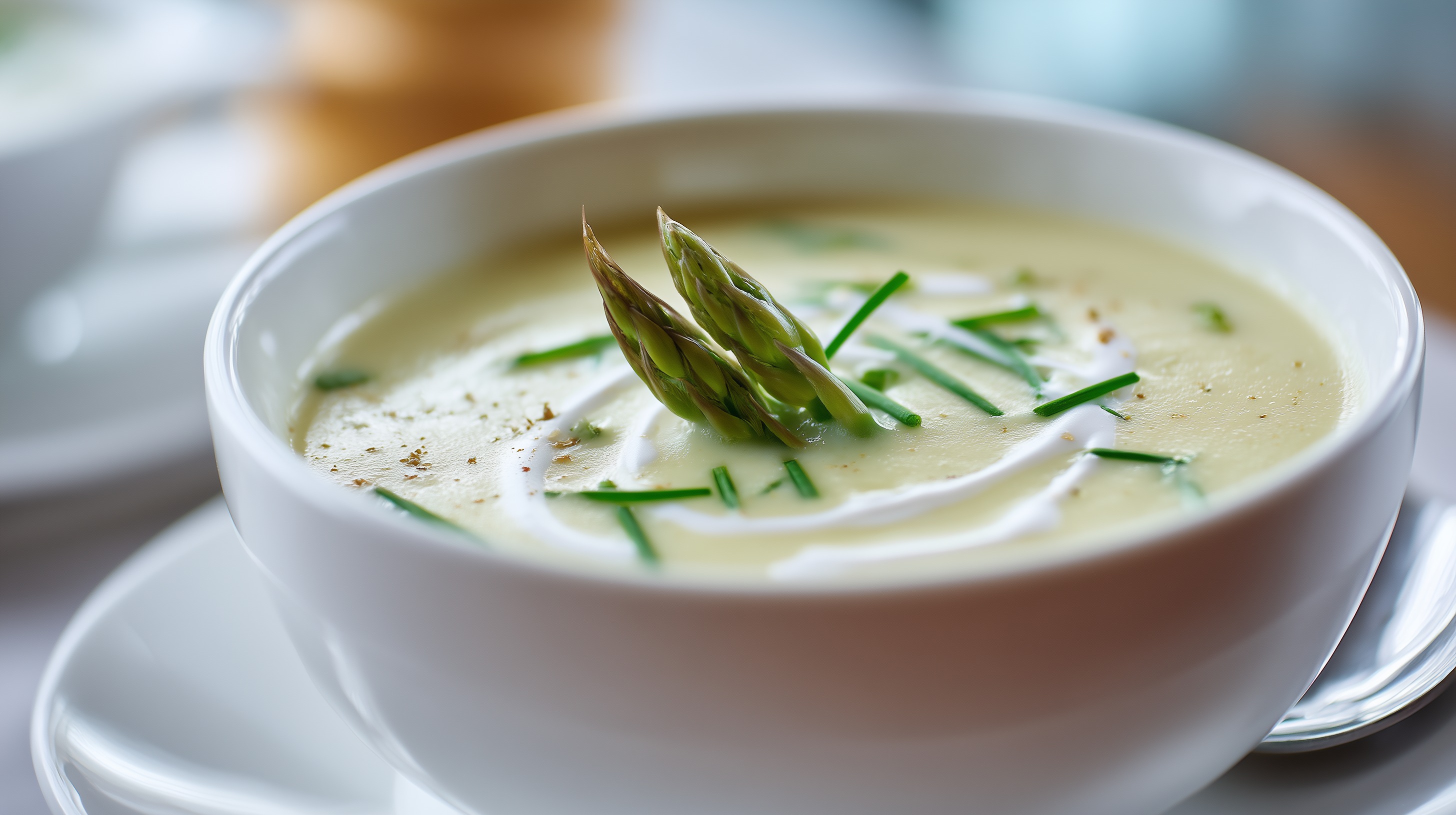 Tipp: Für eine besonders feine Suppe die passierten Spargelreste nicht wegwerfen – sie eignen sich hervorragend als Füllung für ein Omelett oder als Basis für ein Spargelrisotto. Wer es etwas leichter mag, kann die Sahne durch Hafercreme ersetzen, ohne dabei nennenswert an Cremigkeit zu verlieren.