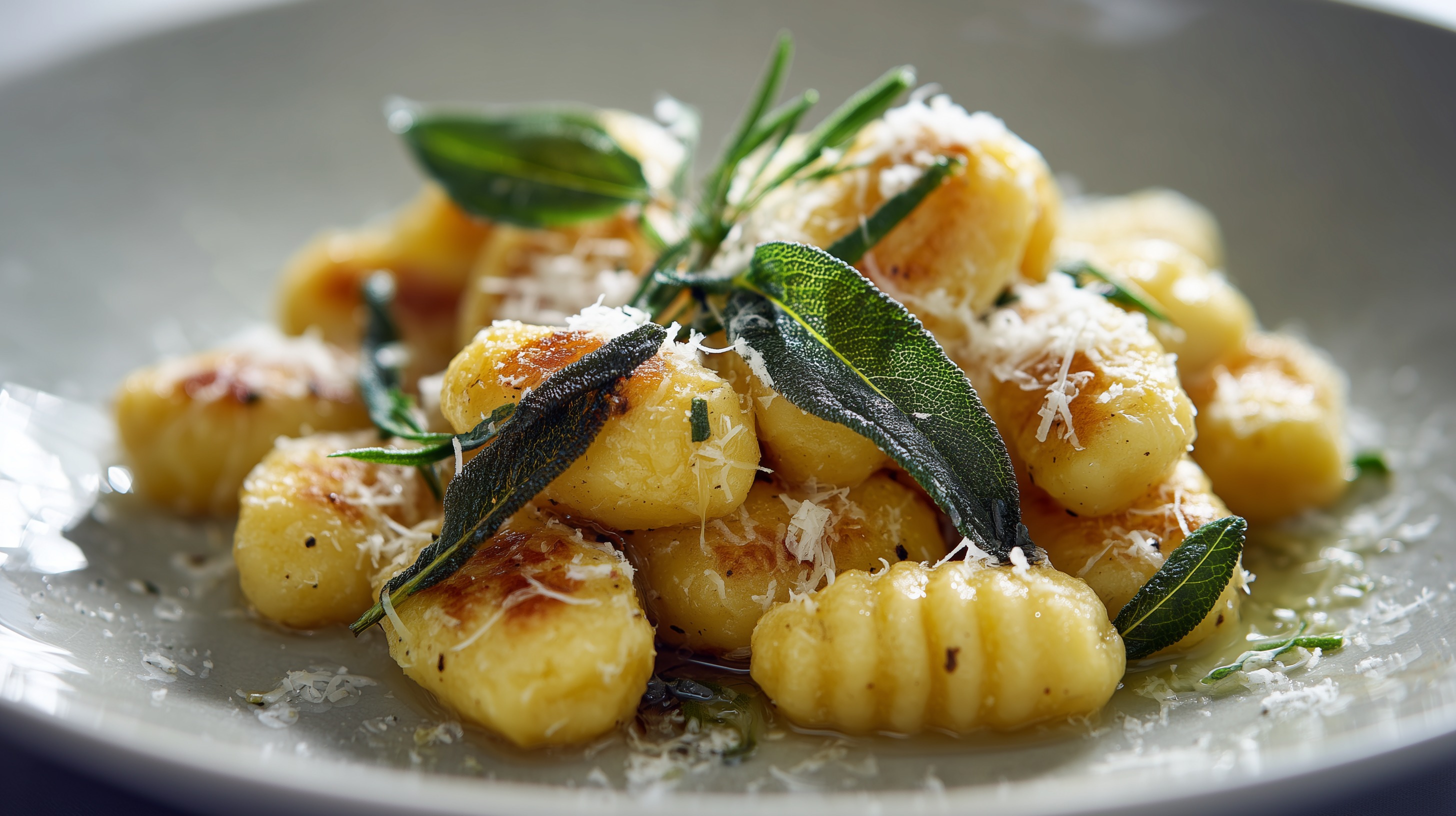 - Gnocchi auf vorgewärmten Tellern anrichten, großzügig mit frisch geriebenem Parmesan bestreuen und mit Pfeffer würzen. Sofort servieren.