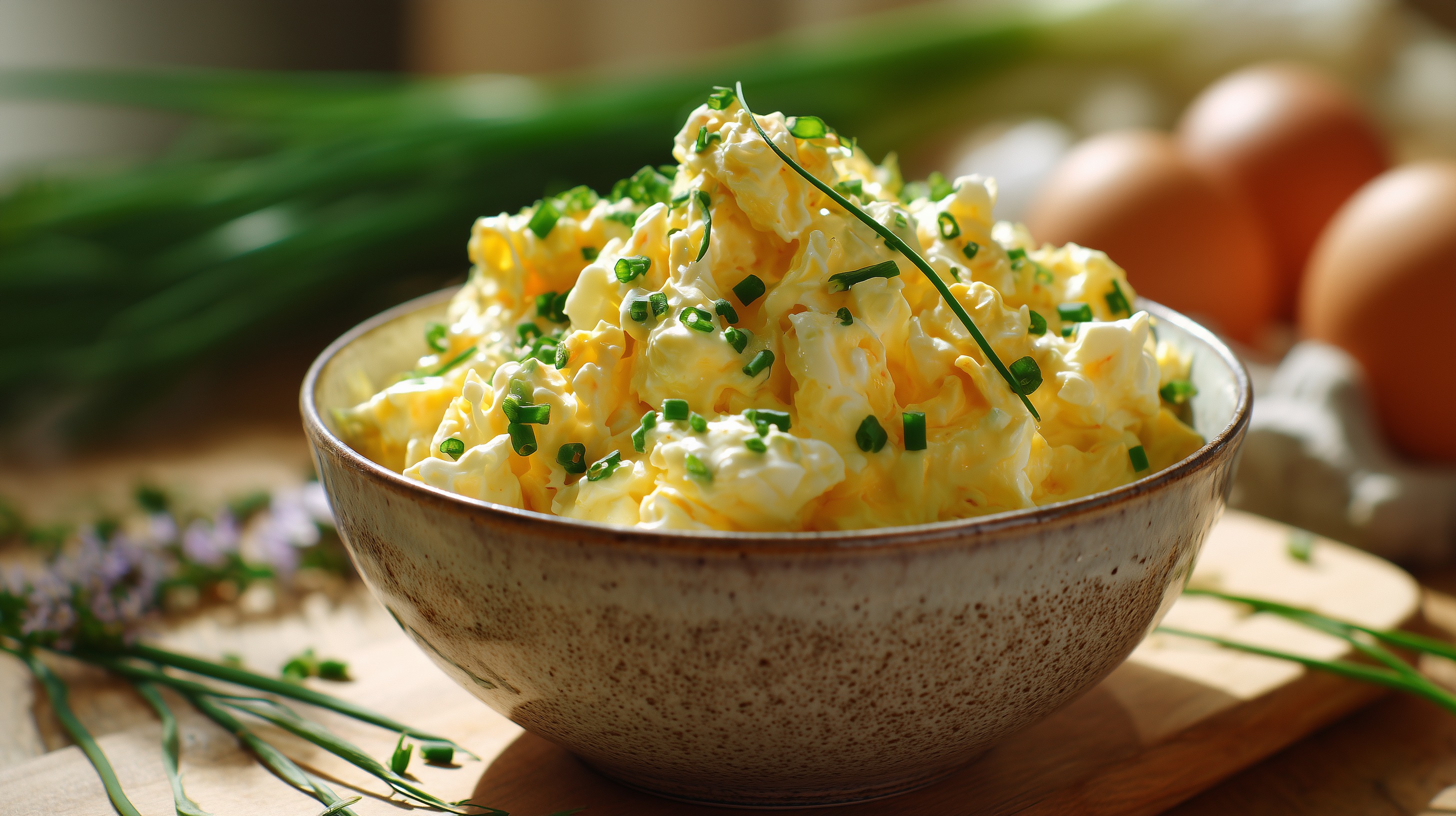 Tipp: Der Eiersalat schmeckt am besten, wenn er mindestens 30 Minuten im Kühlschrank durchziehen kann. Hervorragend passt er zu frischem Bauernbrot, als Beilage zum Grillen oder als Füllung in einem knusprigen Baguette. Wer mag, kann zusätzlich 2–3 Cornichons fein gehackt unterrühren – das gibt eine angenehme Säure.