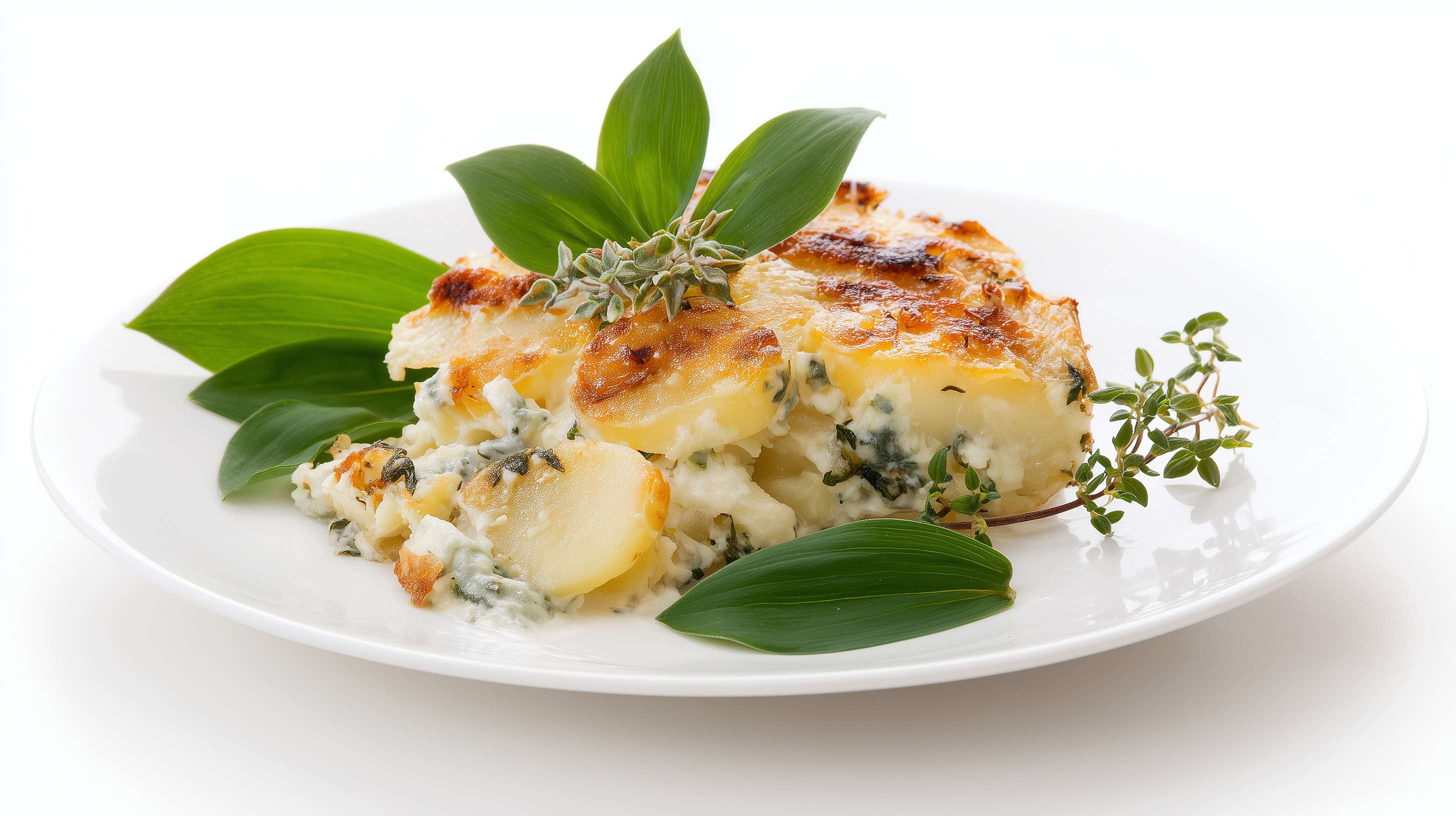 Kartoffelgratin mit frischem Bärlauch auf Teller von Marco Verch unter Creative Commons 4.0
