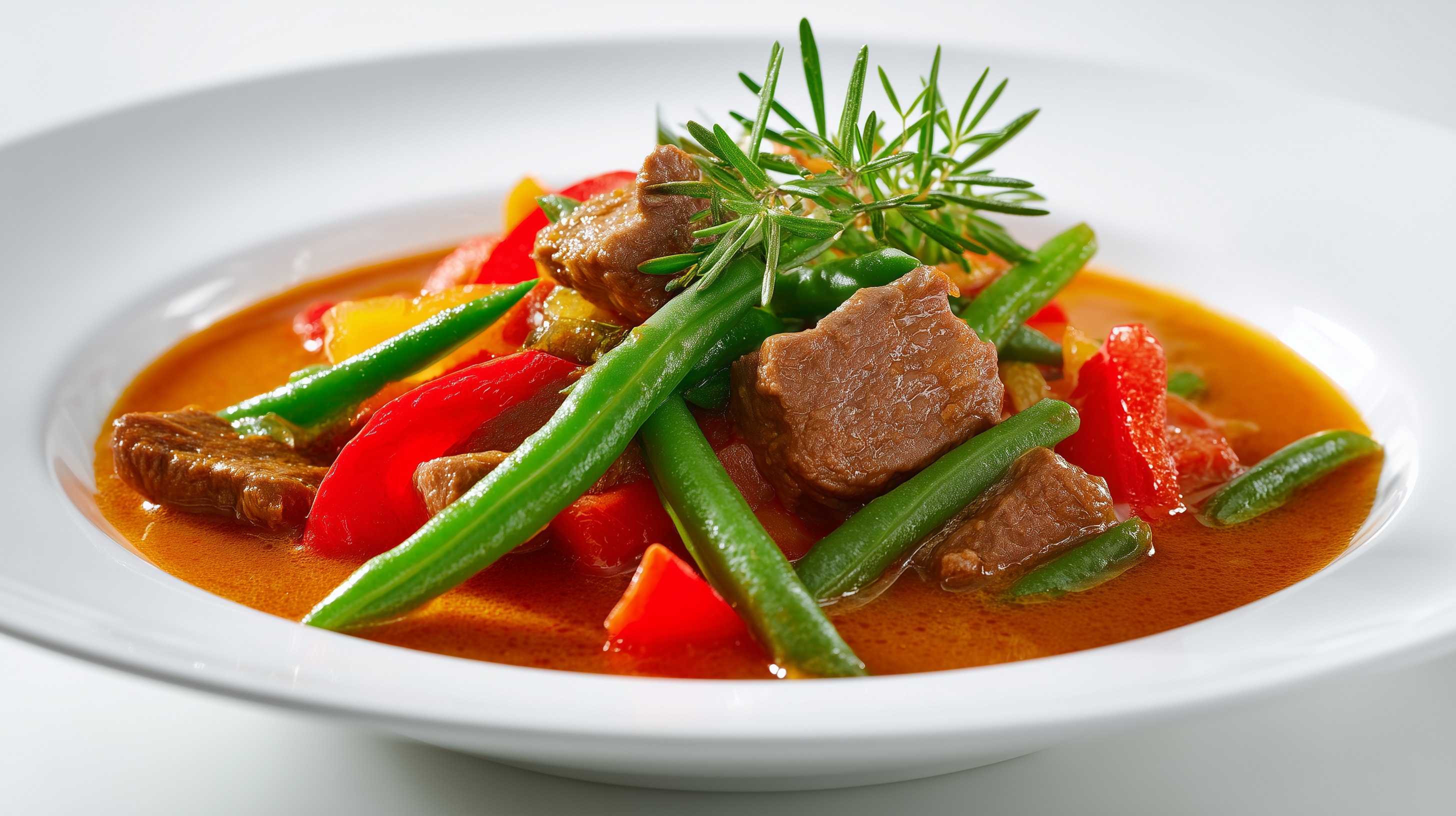 - Die grünen Bohnen und die Paprikastreifen in die Suppe geben, den Deckel wieder auflegen und weitere 15–20 Minuten mitköcheln, bis das Gemüse bissfest gegart ist.