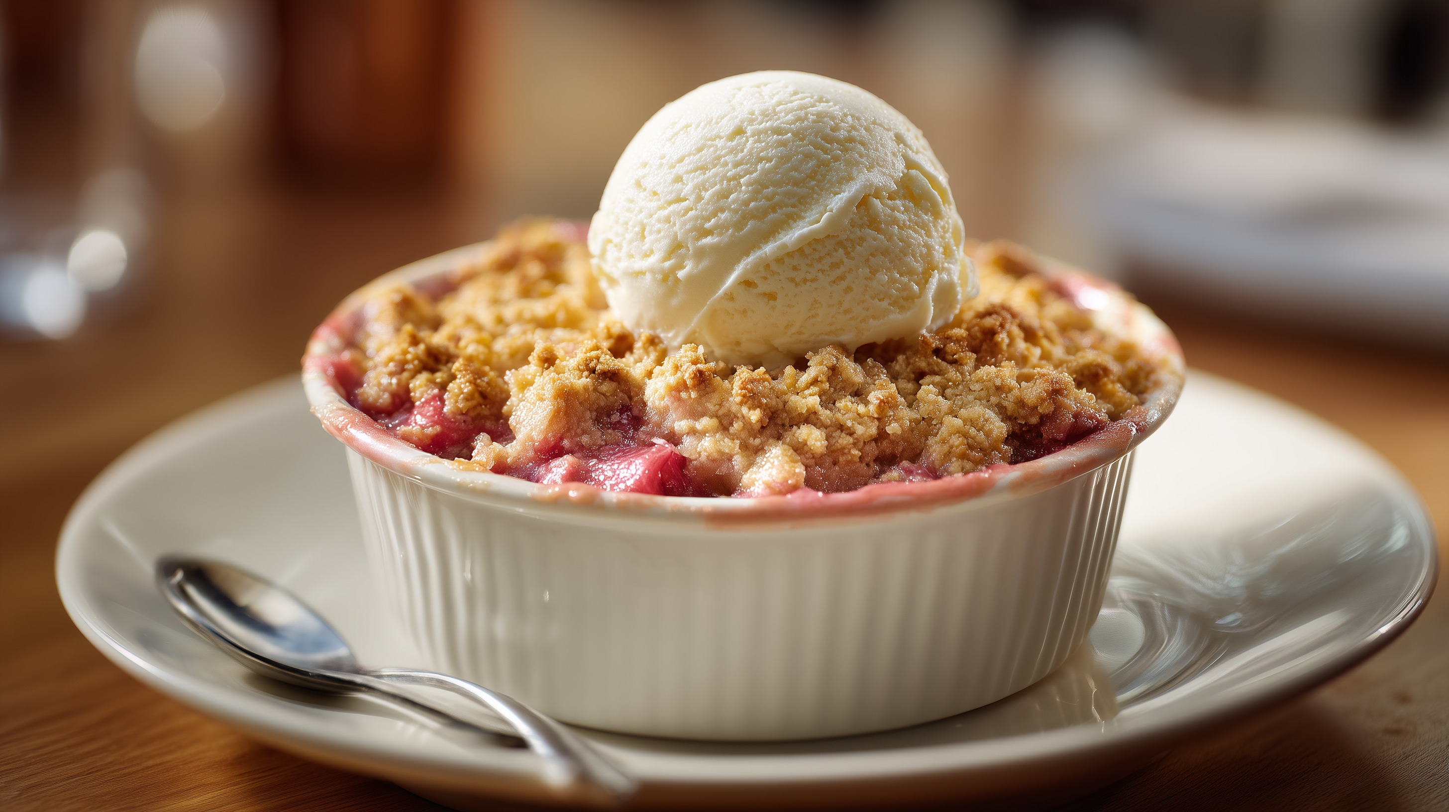 Rhabarber Crumble mit Vanilleeis im Förmchen von Marco Verch unter Creative Commons 4.0
