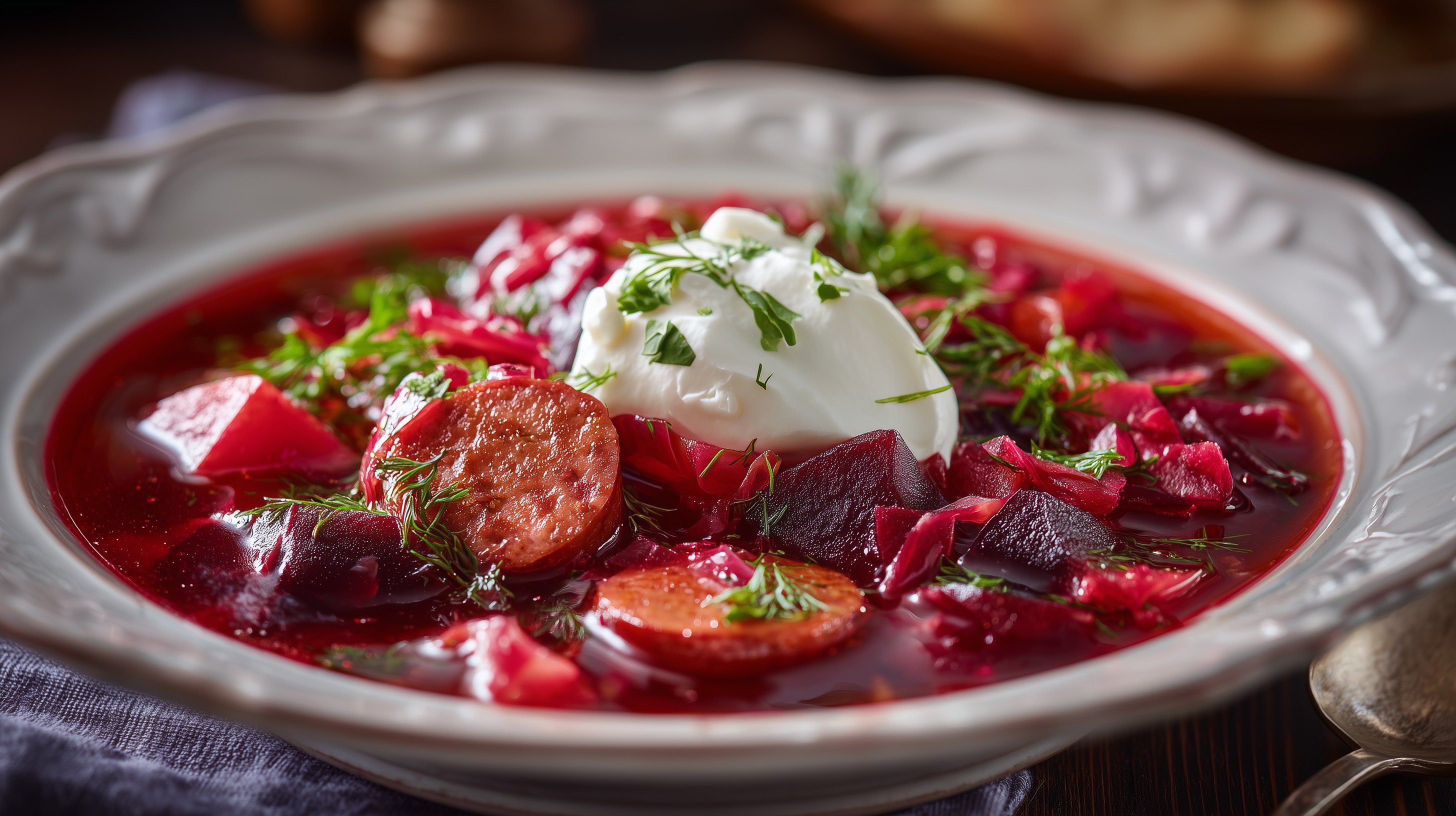 Tipp: Borschtsch schmeckt am nächsten Tag noch besser, da die Aromen über Nacht durchziehen. Einfach im Kühlschrank aufbewahren und vor dem Servieren sanft erwärmen. Wer es vegetarisch möchte, lässt die Wurst weg und verwendet Gemüsebrühe – der Geschmack bleibt trotzdem intensiv und aromatisch.
