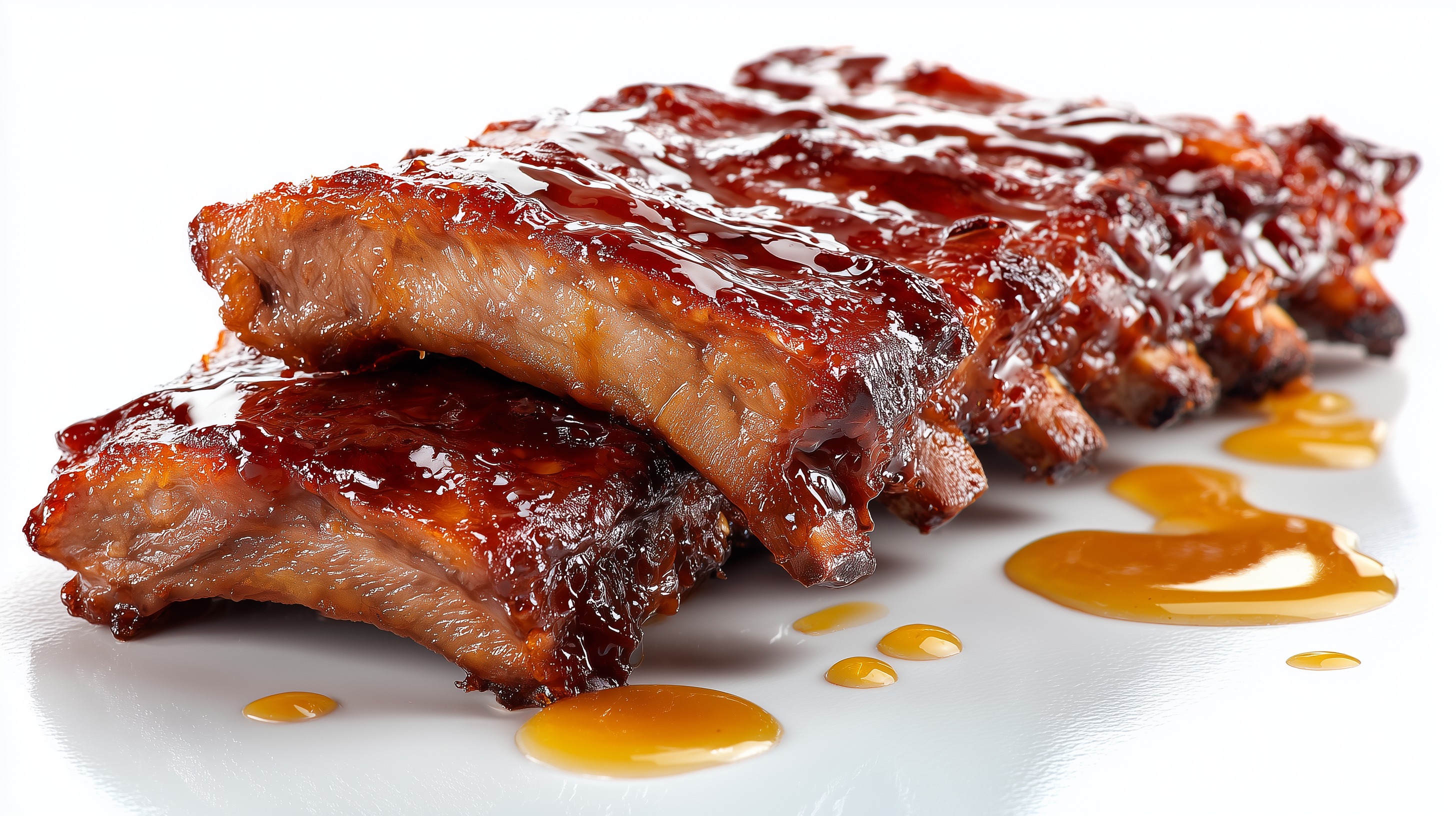 - Die Rippchen aus dem Ofen nehmen und 5 Minuten ruhen lassen. Auf einem weißen Teller anrichten und mit etwas Honig beträufeln.