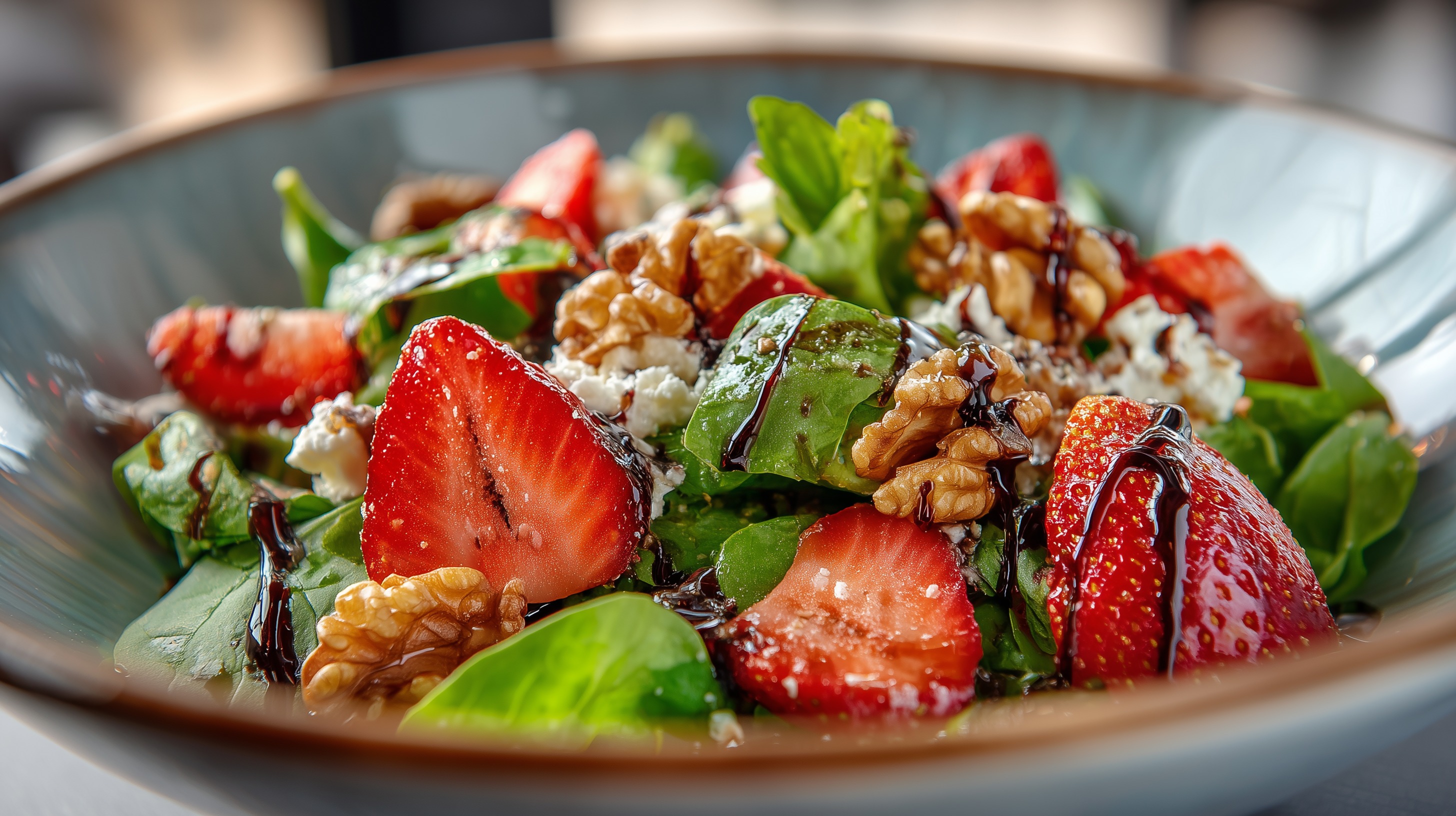 Tipp: Für eine besonders intensive Note die Erdbeeren 15 Minuten vor der Zubereitung mit etwas Honig und einem Spritzer Balsamico marinieren. Im Sommer schmeckt der Salat auch hervorragend mit frischen Himbeeren oder Pfirsichscheiben als Ergänzung zu den Erdbeeren.