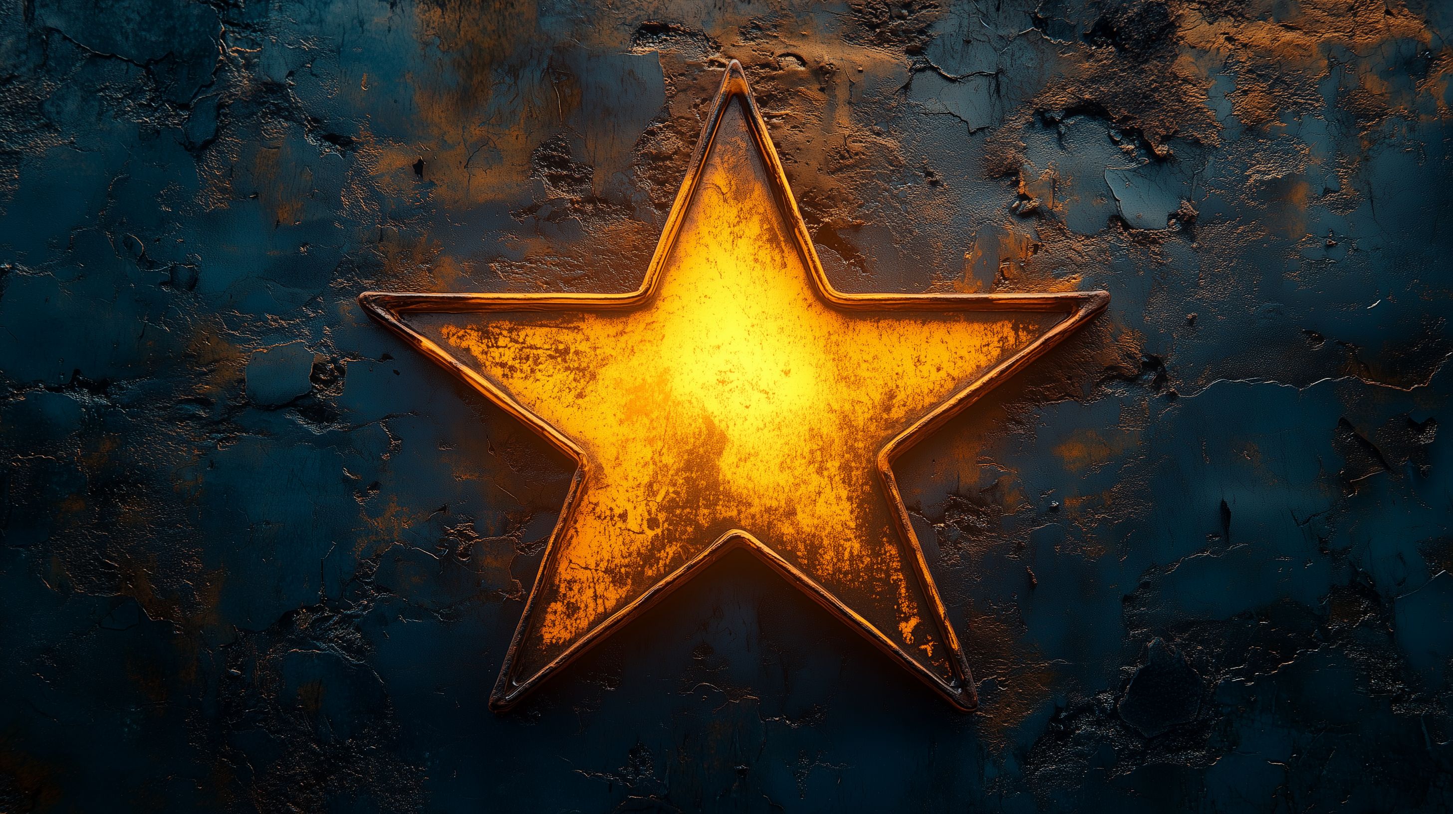 Dieses faszinierende Foto zeigt eine leuchtkräftige, goldfarbene Sternfigur vor einem dunkel strukturierten Hintergrund. Das metallische Objekt scheint fast zu glühen und verleiht der Szene eine starke, fast mystische Ausstrahlung. Die Komposition spielt gekonnt mit Licht und Schatten, was dem Bild eine einzigartige, abstrakte Ästhetik verleiht. Diese hochwertige, hochauflösende Aufnahme kann ideal als Hintergrund, Textur oder grafisches Element in vielen Bereichen wie Blogs, Newsletter, Social-Media-Posts oder Werbeanzeigen eingesetzt werden. Das Foto steht unter einer Creative-Commons-Lizenz und kann daher frei genutzt werden.