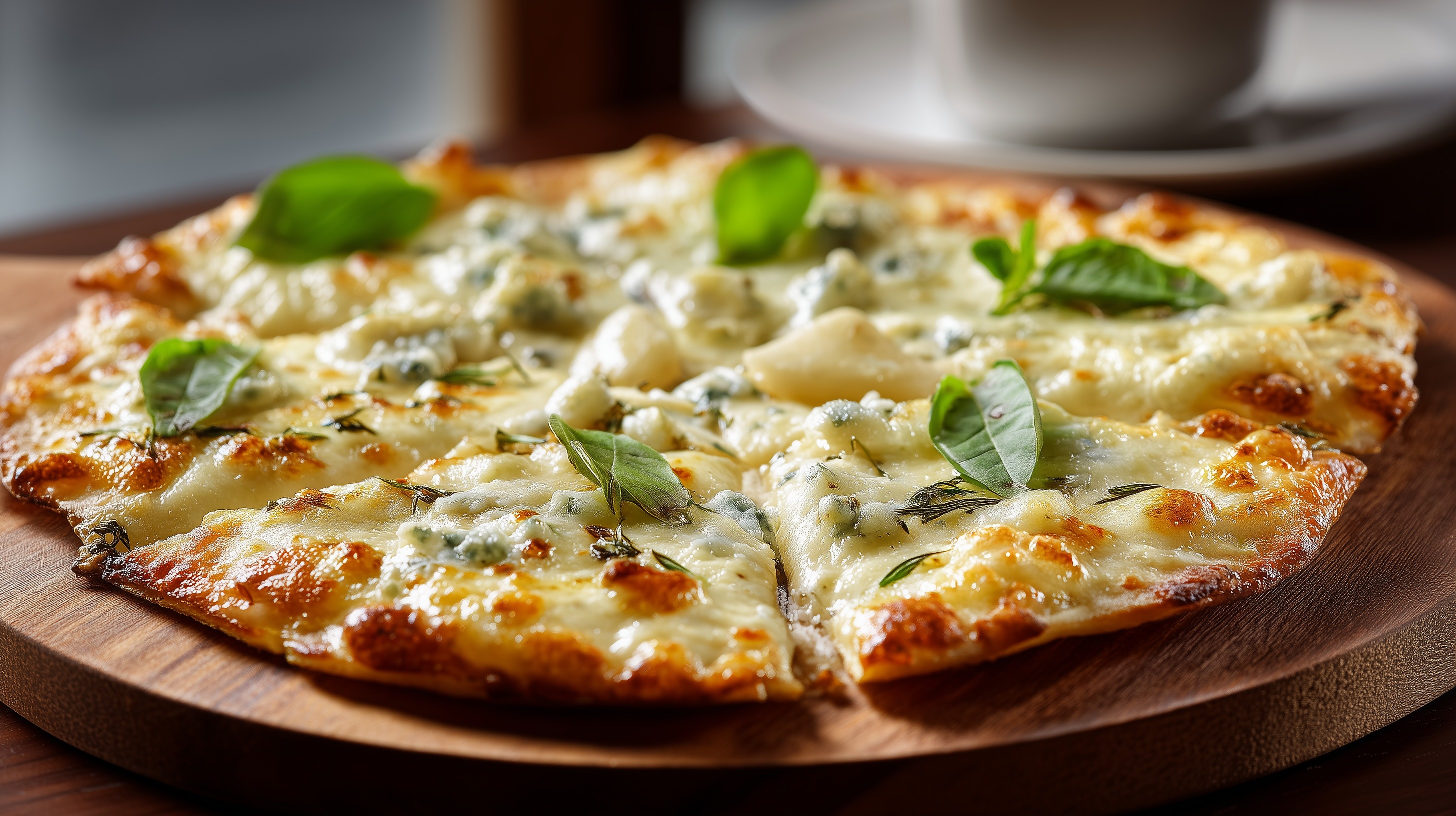 Tipp: Für einen besonders knusprigen Boden den Pizzastein mindestens 30 Minuten im Ofen vorheizen. Wer es etwas milder mag, kann den Gorgonzola durch einen milden Blauschimmelkäse oder Ricotta ersetzen. Die frischen Basilikumblätter unbedingt erst nach dem Backen auflegen, damit sie ihr Aroma und ihre leuchtend grüne Farbe behalten.