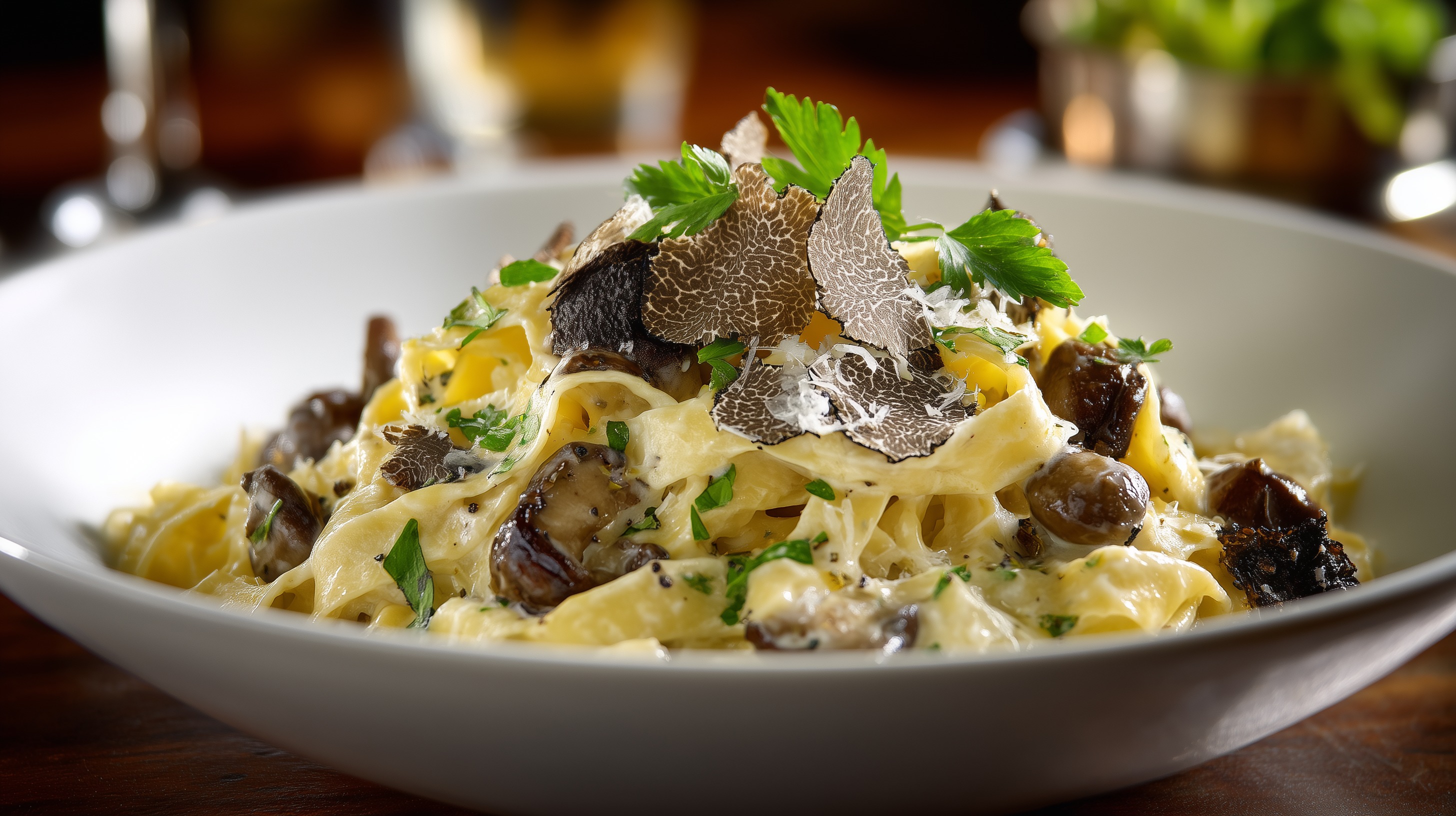 Tipp: Für ein noch intensiveres Trüffelaroma die fertige Pasta vor dem Servieren mit einigen Tropfen hochwertigen Trüffelöls beträufeln. Wer frische Trüffel verwendet, sollte diese erst ganz am Schluss über das Gericht hobeln, da das Aroma durch Hitze verloren geht.