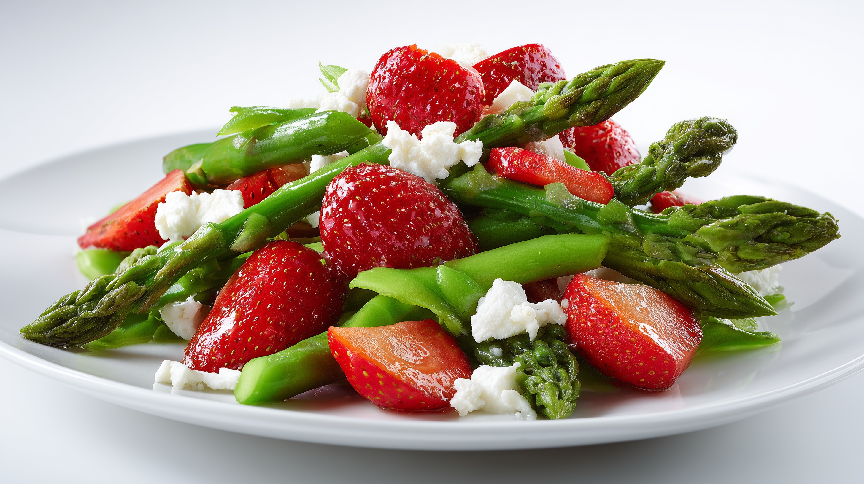 Erdbeer Spargel Salat mit Feta auf weißem Teller von Marco Verch unter Creative Commons 4.0