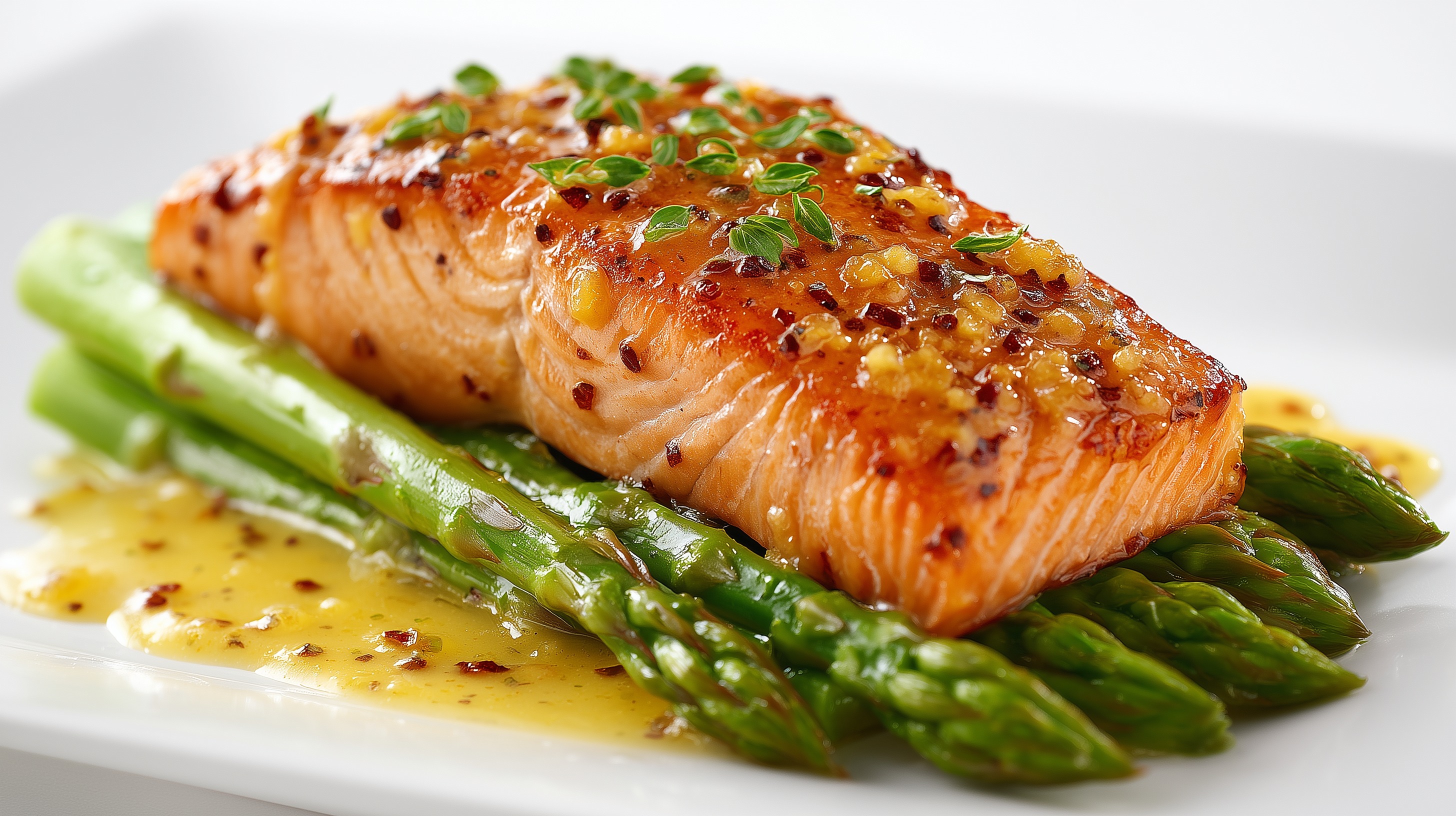 - Alles zusammen ca. 8–10 Minuten fertig garen, bis der Lachs durchgegart und die Glasur leicht karamellisiert ist. Der Spargel sollte noch leicht bissfest sein.