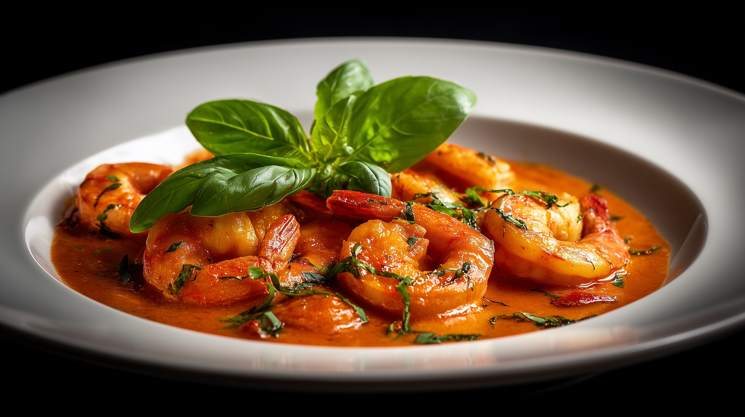 - Die gewürzten Garnelen direkt in die Soße geben und ca. 3–4 Minuten garen, bis sie rosa und durchgegart sind. Nicht zu lange garen, damit sie zart bleiben.