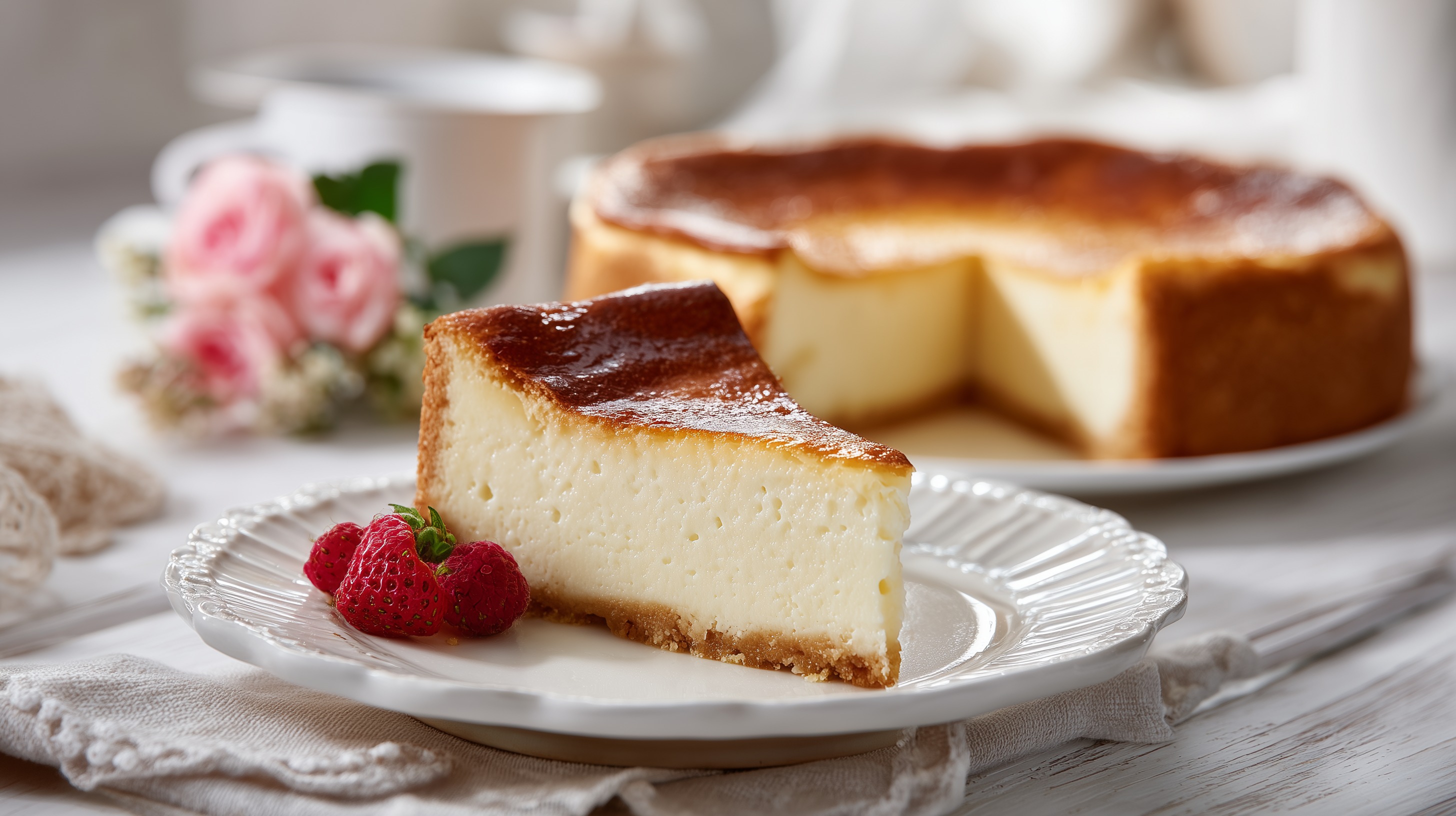 - Den Kuchen auf mittlerer Schiene ca. 50–55 Minuten backen, bis die Oberfläche goldbraun ist und die Masse in der Mitte nur noch leicht wackelt.