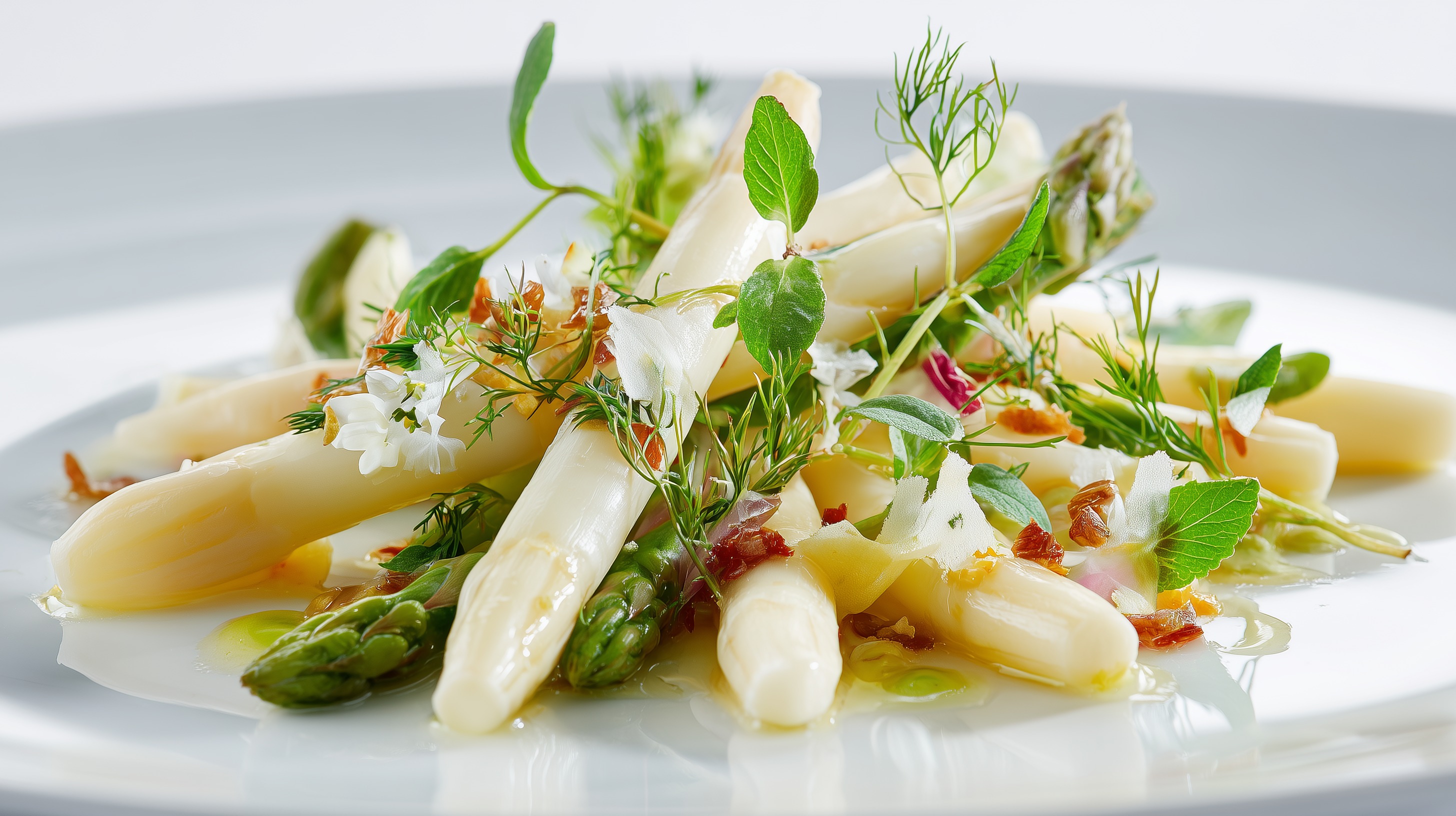 Tipp: Für eine besonders elegante Präsentation den Spargel nicht schneiden, sondern ganz lassen und die Kräuter und Garnituren locker darüber drapieren. Der Salat schmeckt auch lauwarm serviert besonders aromatisch – ideal als leichter Vorspeise im Frühling, wenn Spargel Saison hat.