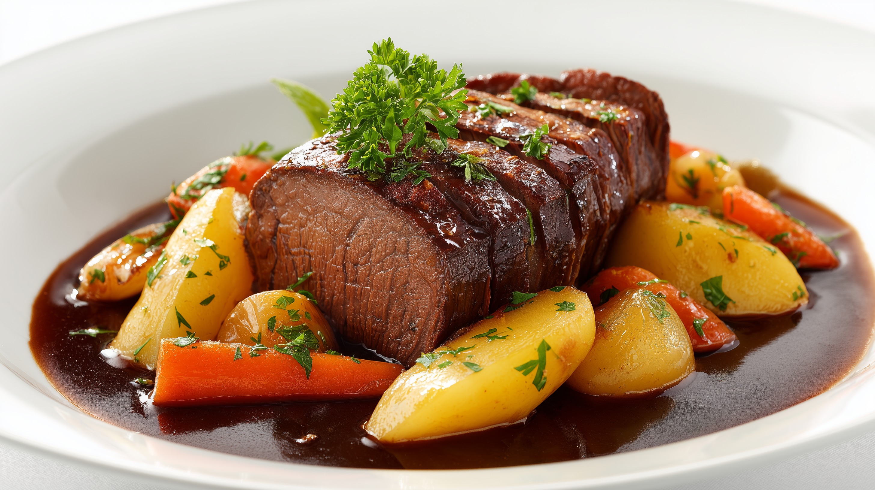 Tipp: Der Schmorbraten schmeckt am nächsten Tag aufgewärmt noch besser, da die Aromen über Nacht weiter durchziehen. Bereiten Sie das Gericht daher ruhig einen Tag im Voraus zu und erhitzen Sie es sanft in der Soße.