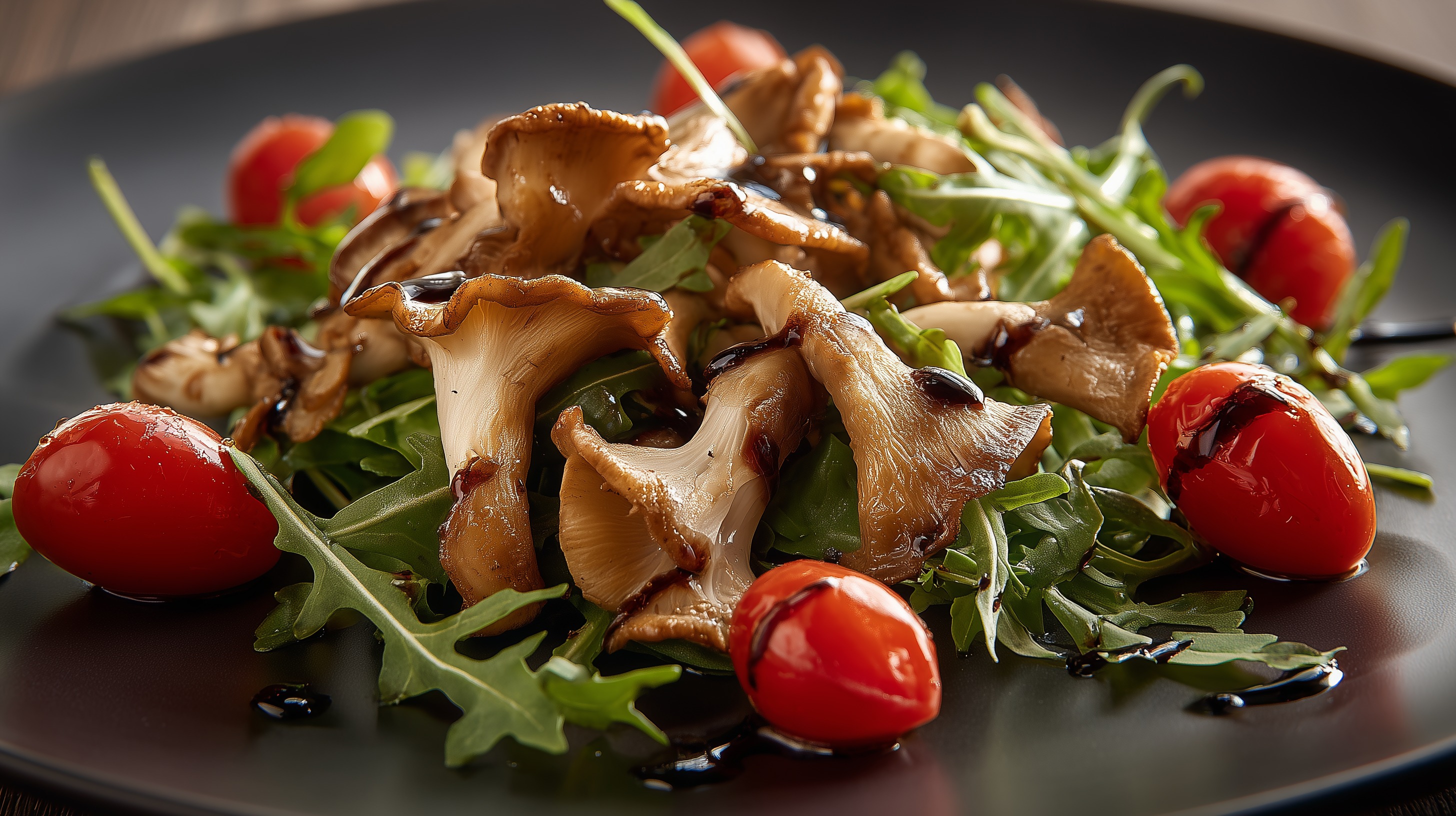 Gebratene Austernpilze auf Rucola mit Kirschtomaten von Marco Verch unter Creative Commons 4.0