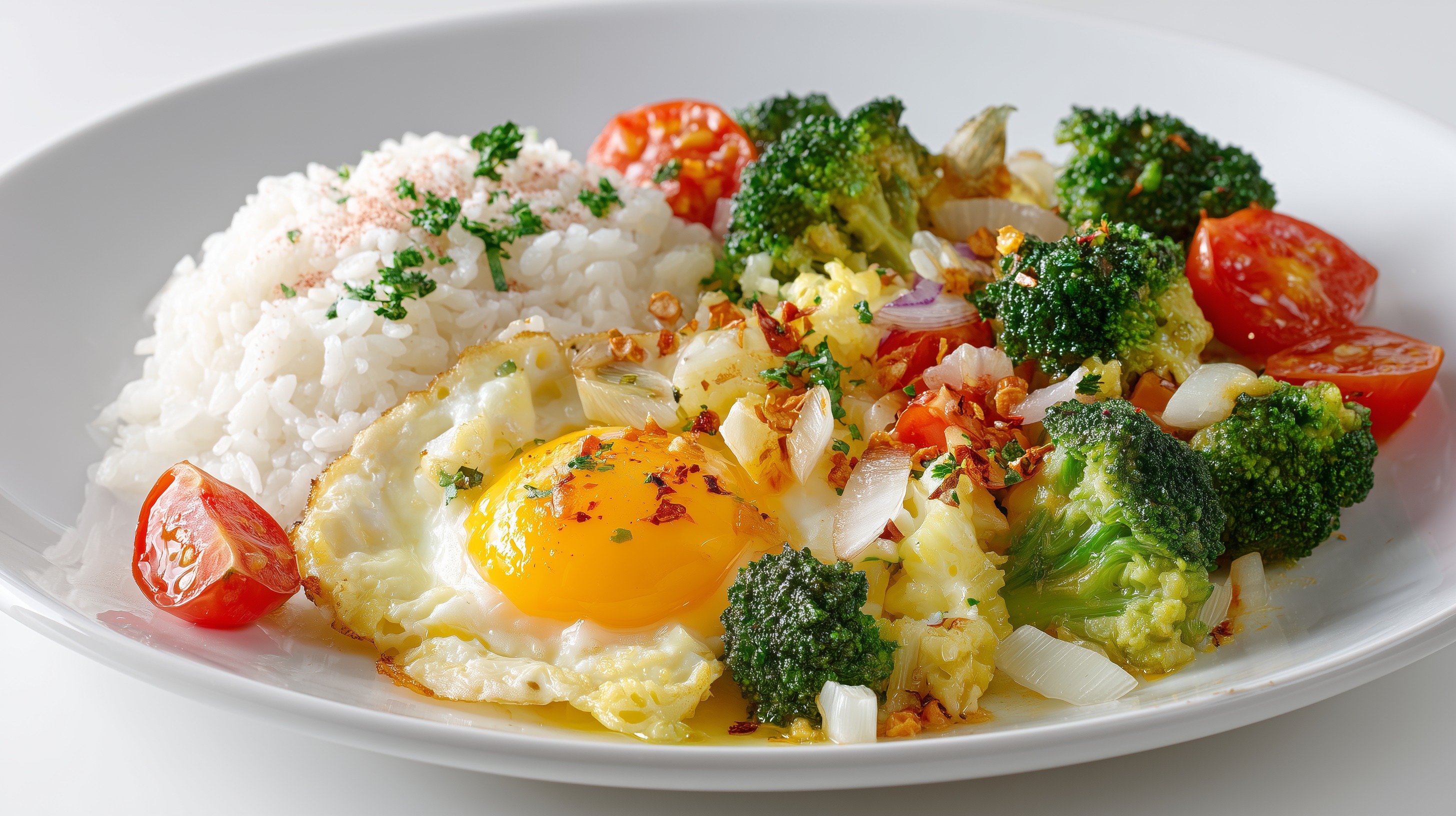- Den Auflauf aus dem Ofen nehmen, mit frischer Petersilie bestreuen und zusammen mit dem gekochten Reis servieren.